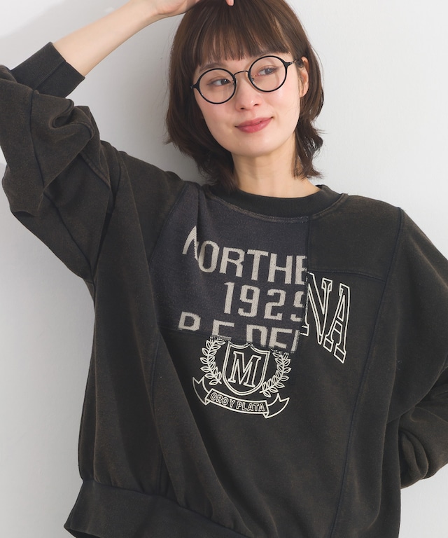 K261009 デニム切替裏毛プルオーバー / Denim-Look Panel Sweat Pullover