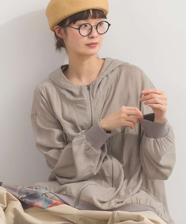 K261032 シアー無地布帛ZIPフード付きブルゾン / Sheer Woven Zip-Up Hooded Blouson