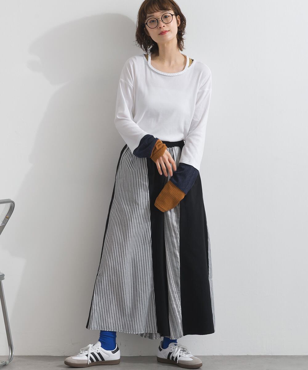 ゆったりとしたリネンシャツやオーバーサイズのニットと合わせて、リラックス感のあるスタイルに。