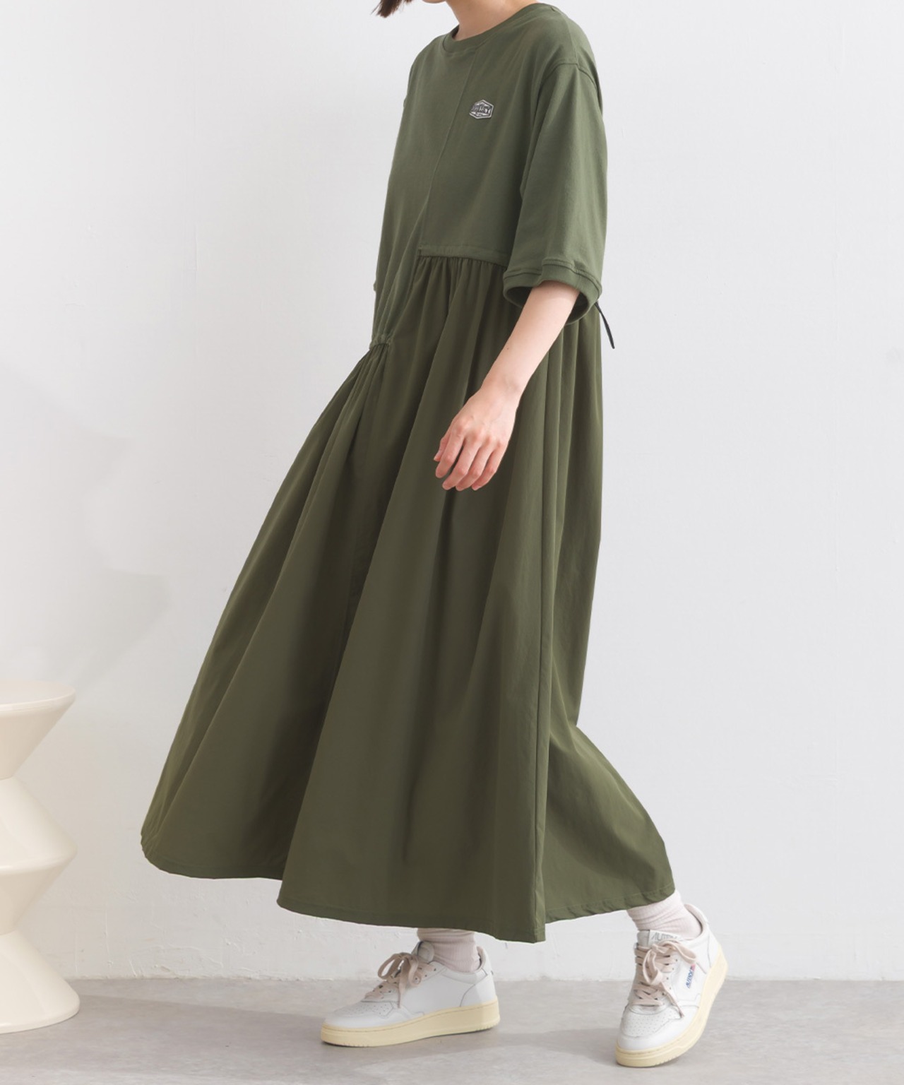 軽やかなストレッチナイロンと柔らかな天竺素材の組み合わせにより、動きやすさと快適な着心地を実現。