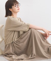 大ぶりのイヤリングやネックレスでシンプルなワンピースにアクセントを加えれば、1枚でお出かけ着にもなります。