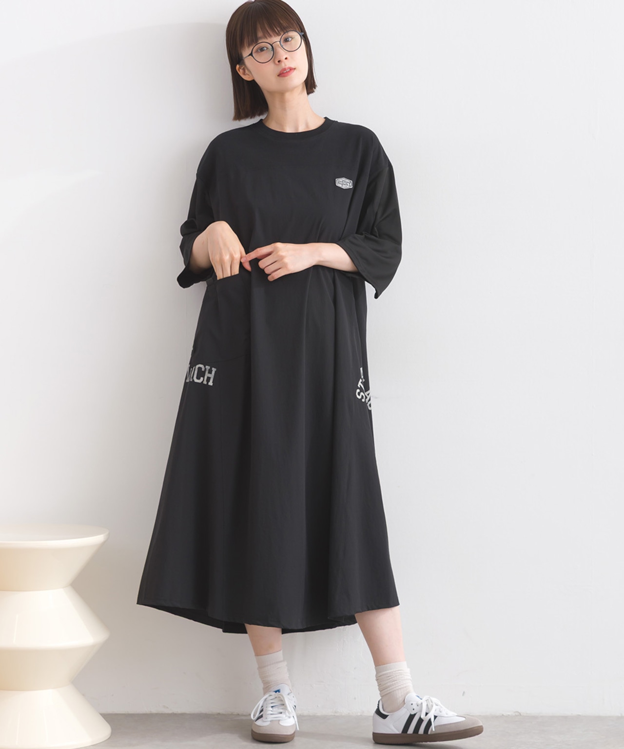 胸元のワンポイント刺繍と裾のプリントデザインが、カジュアルなこなれ感をプラス。