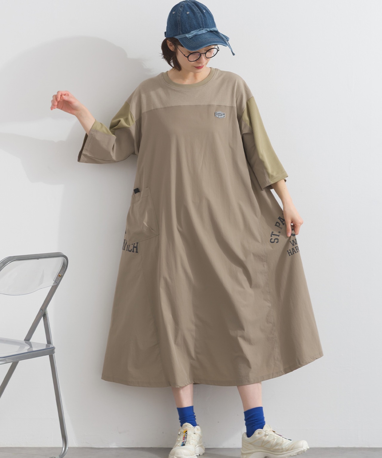 2025秋新作 2025AW 秋スカート 秋新作 オーバーサイズ ワンマイルウエア iriey アイリー カジュアル ナチュラル ミセス ゆったり 体型カバー リップストップ コットン 綿 ナイロンワンピ ナイロン Tワンピ デザインワンピ ワンピ サマーワンピ 人気