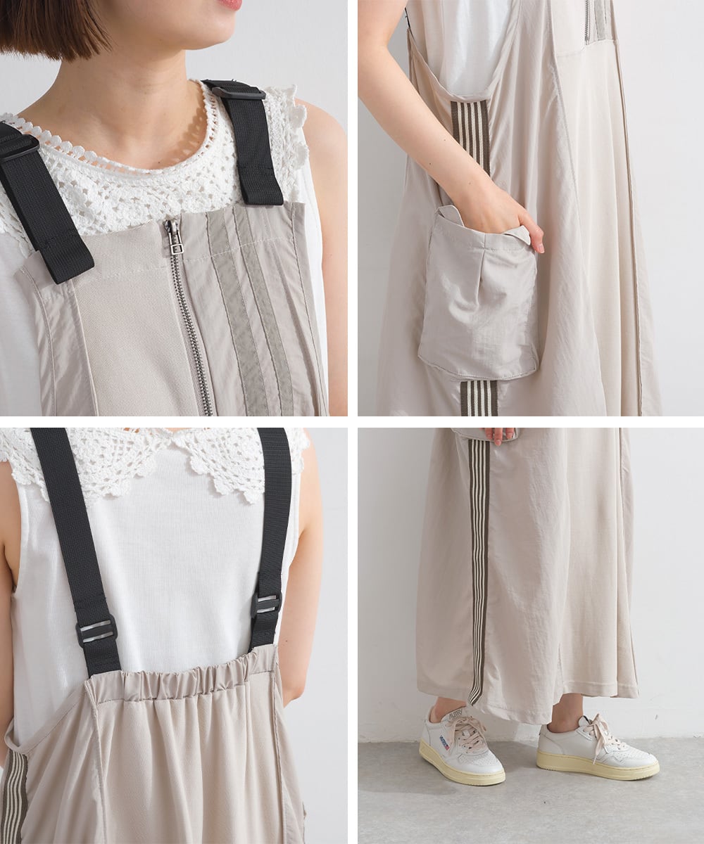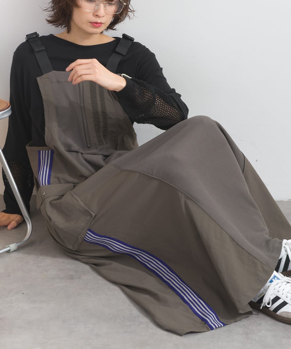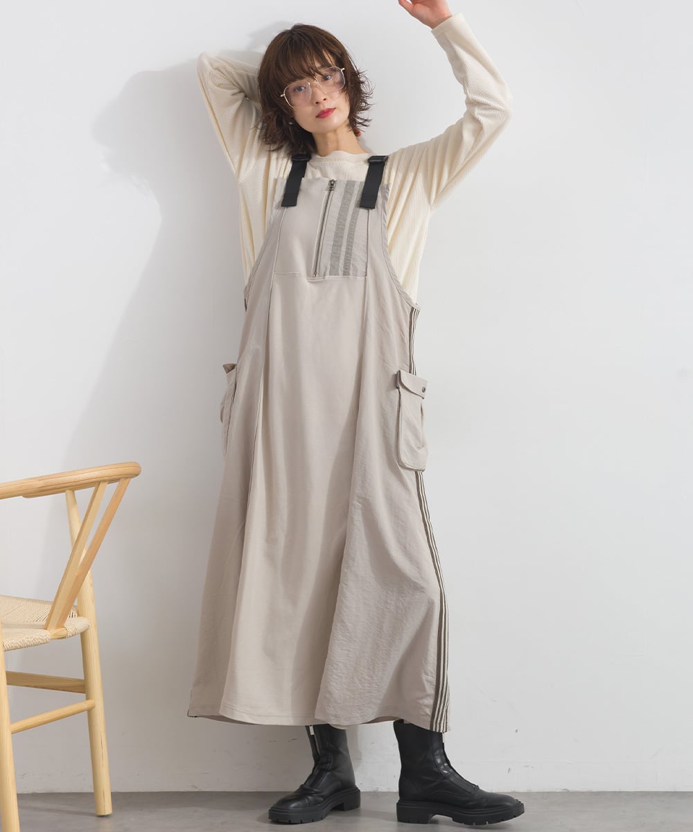 2025夏新作 2025SS オーバーサイズ ワンマイルウエア iriey アイリー カジュアル ナチュラル ミセス ゆったり 体型カバー トラックジャンパースカート トラックワンピ ジャンパースカート ワンピース ジャンスカ ワンピ リメイク風 セットアップ スポーティ スポーツ アスレジャー コットン 綿 人気