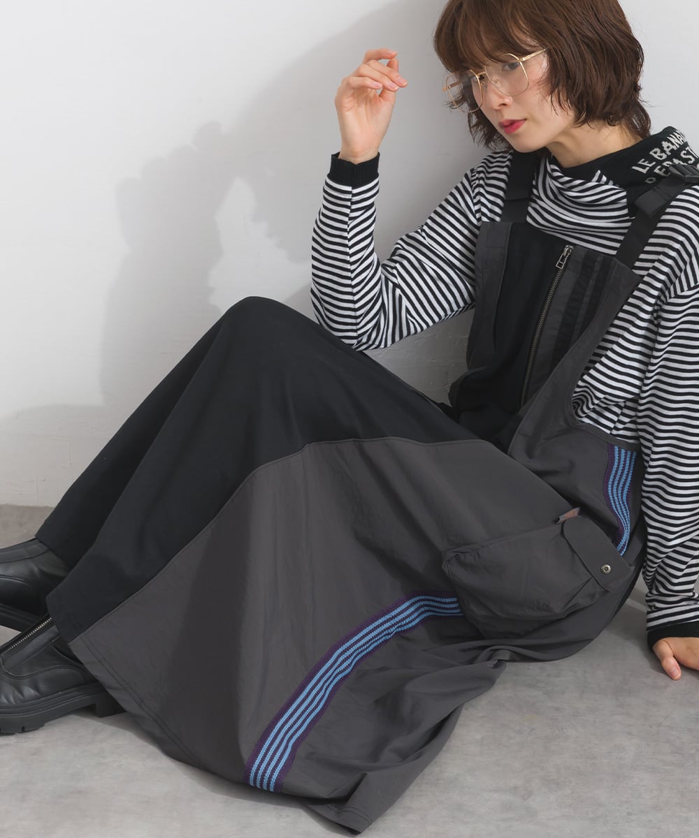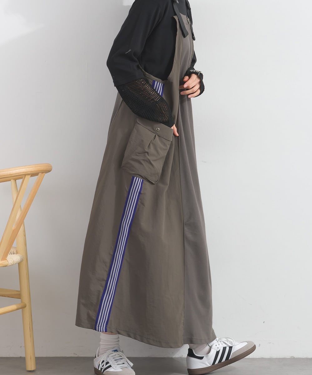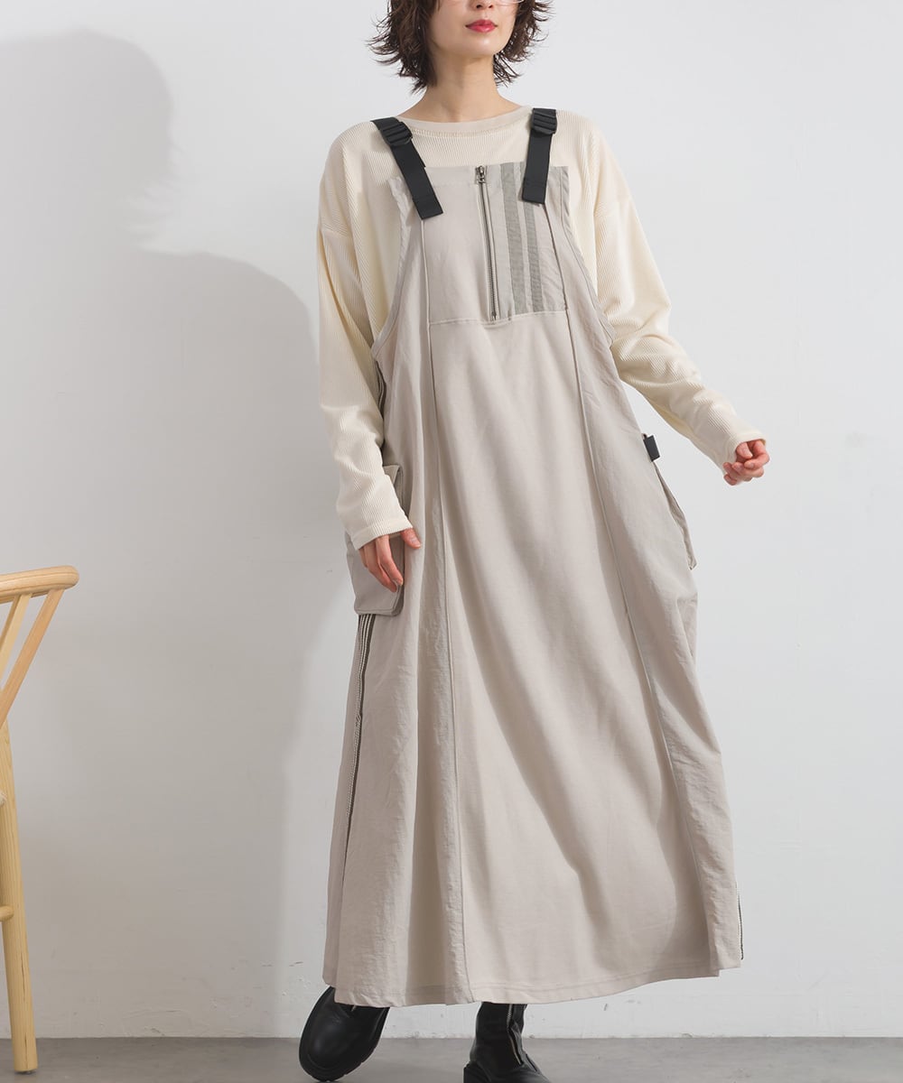 2025夏新作 2025SS オーバーサイズ ワンマイルウエア iriey アイリー カジュアル ナチュラル ミセス ゆったり 体型カバー トラックジャンパースカート トラックワンピ ジャンパースカート ワンピース ジャンスカ ワンピ リメイク風 セットアップ スポーティ スポーツ アスレジャー コットン 綿 人気