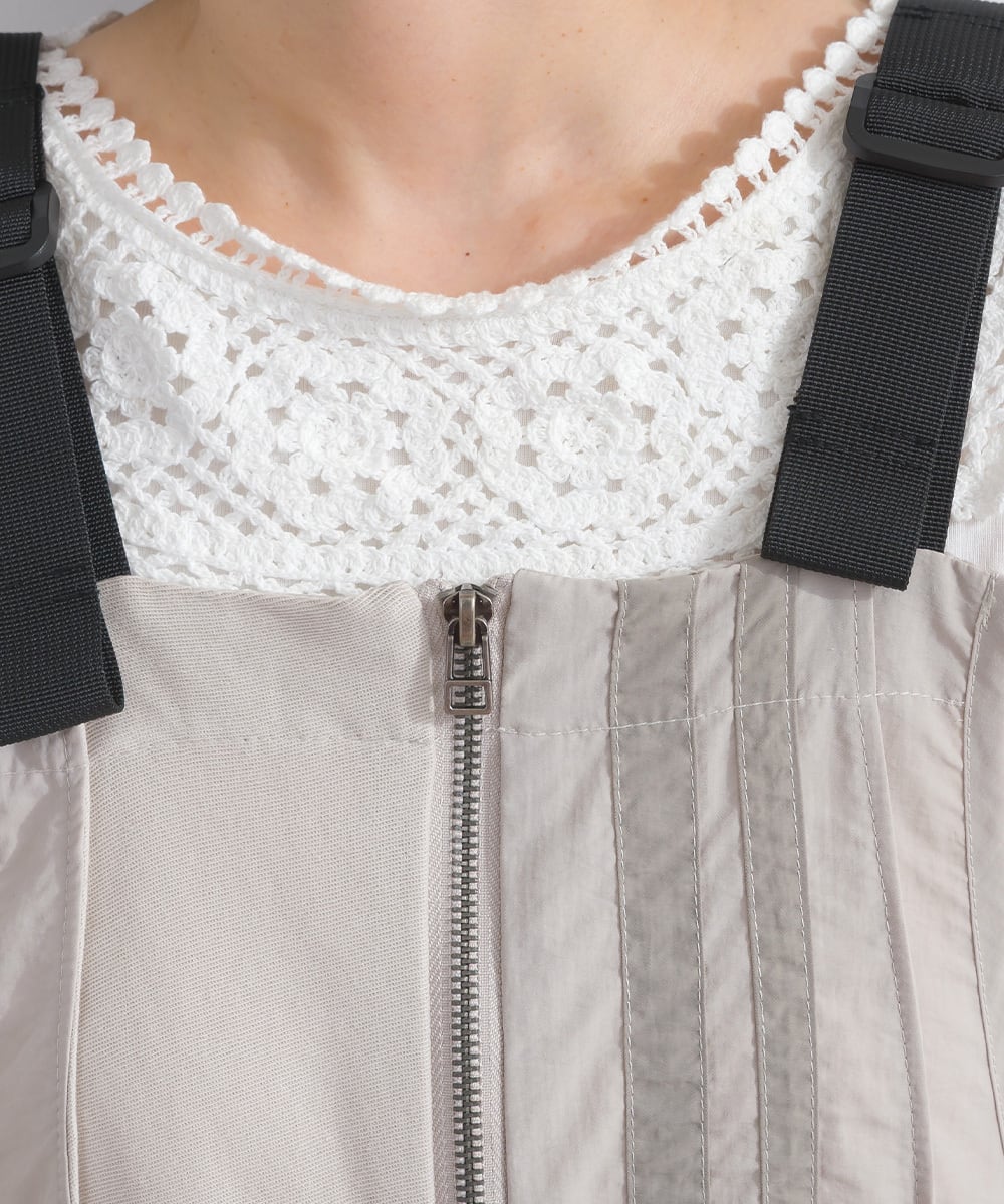 光沢感のある上品なシルケットツイル素材で仕立てた、スポーティーなムード漂うジャンパースカート。