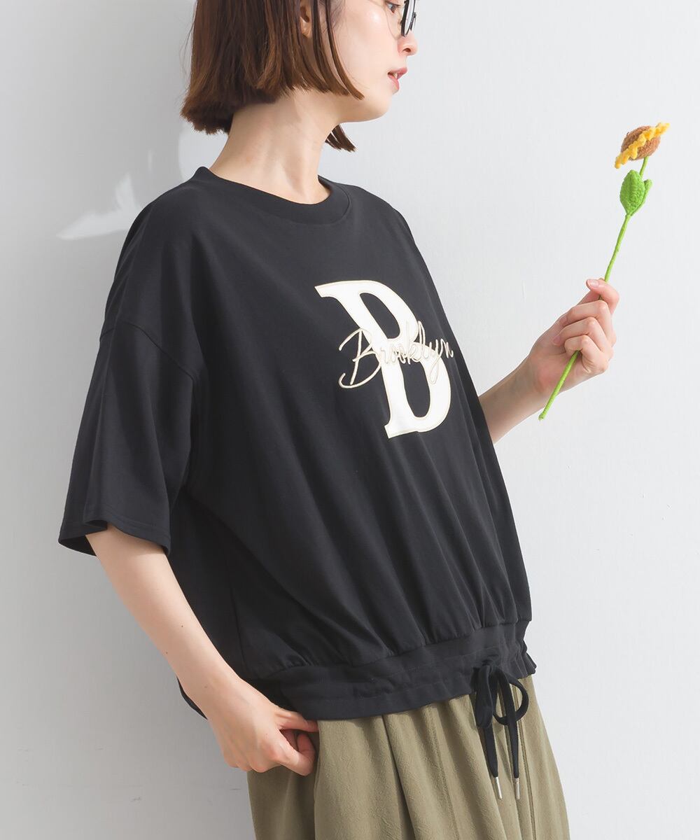 2025春夏新作 2025SS オーバーサイズ ワンマイルウエア iriey アイリー ナチュラル カジュアル 体型カバー カットソー カットプルオーバー プルオーバー 裾スピンドル スピンドル プリント 刺繍 ロゴT プルオーバー Tシャツ 綿 コットン 人気