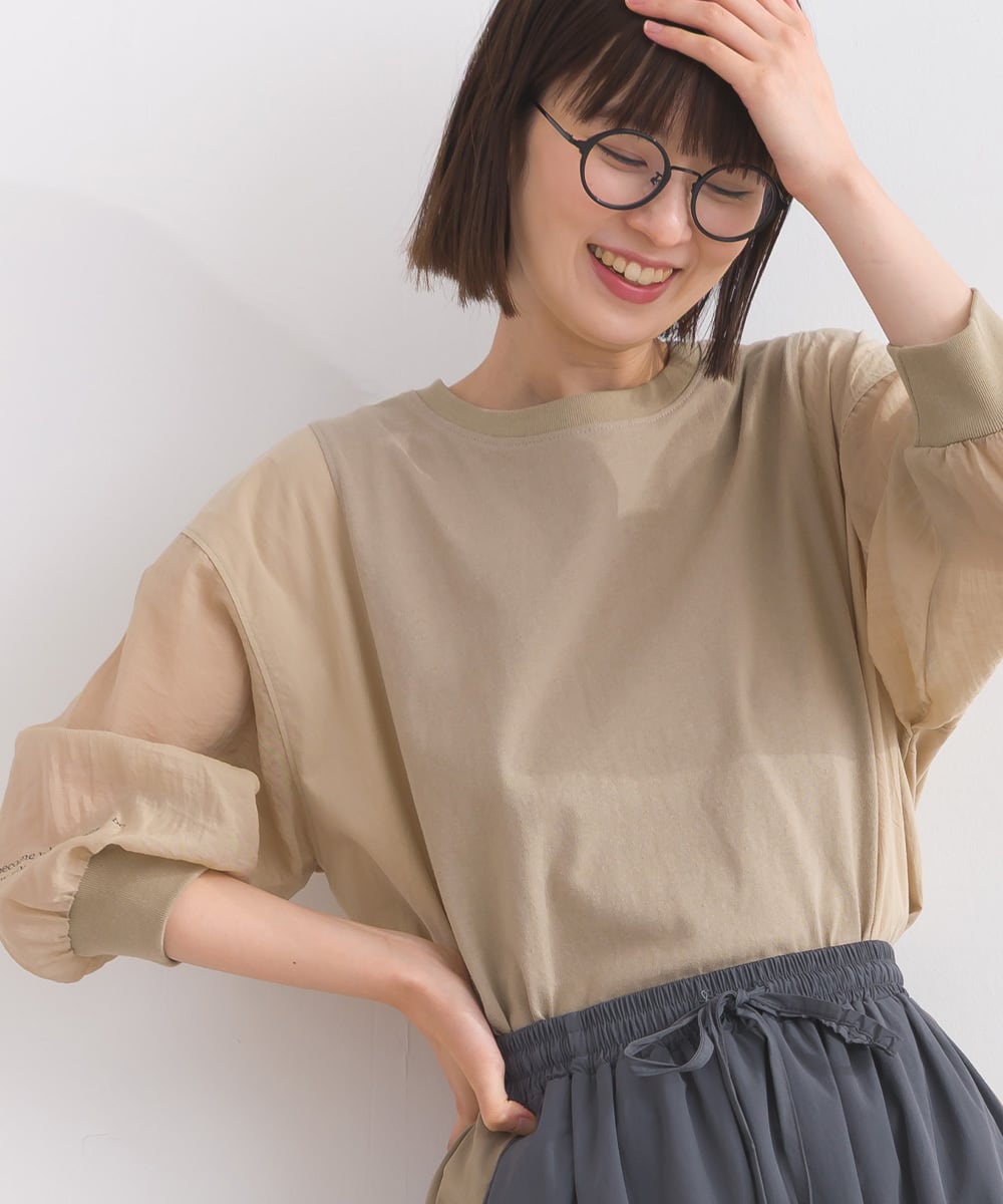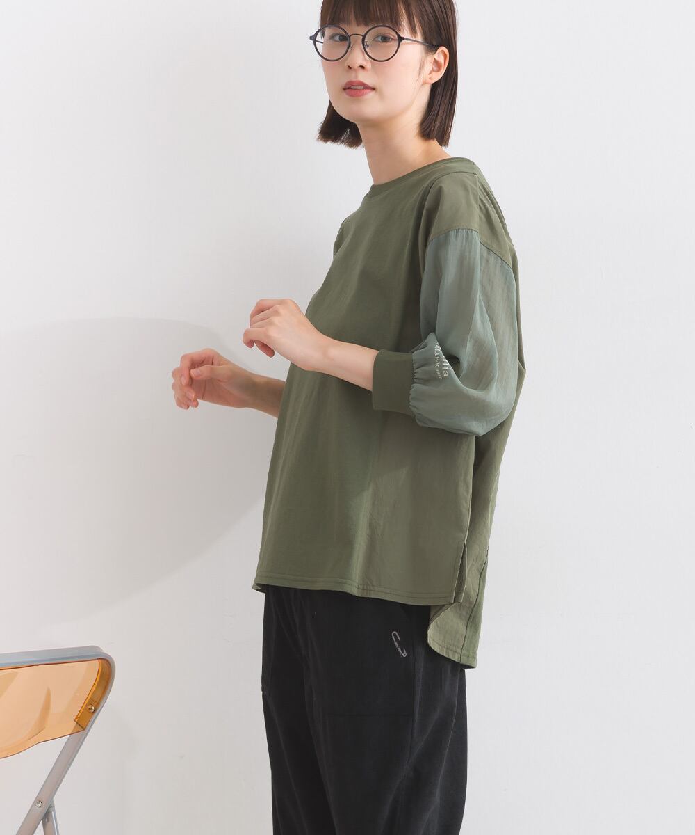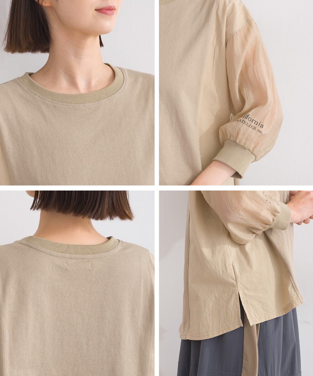 2025秋新作 2025SS 晩夏 AUTUMN 秋 秋Tシャツ 再入荷 再生産 オーバーサイズ ワンマイルウエア ミセス ゆったり iriey アイリー ナチュラル カジュアル カットソー プルオーバー デザインTシャツ デザインプルオーバー 切替プルオーバー 異素材プルオーバー 異素材 異素材切替 布帛切替 メンズライク 綿混 コットン 人気