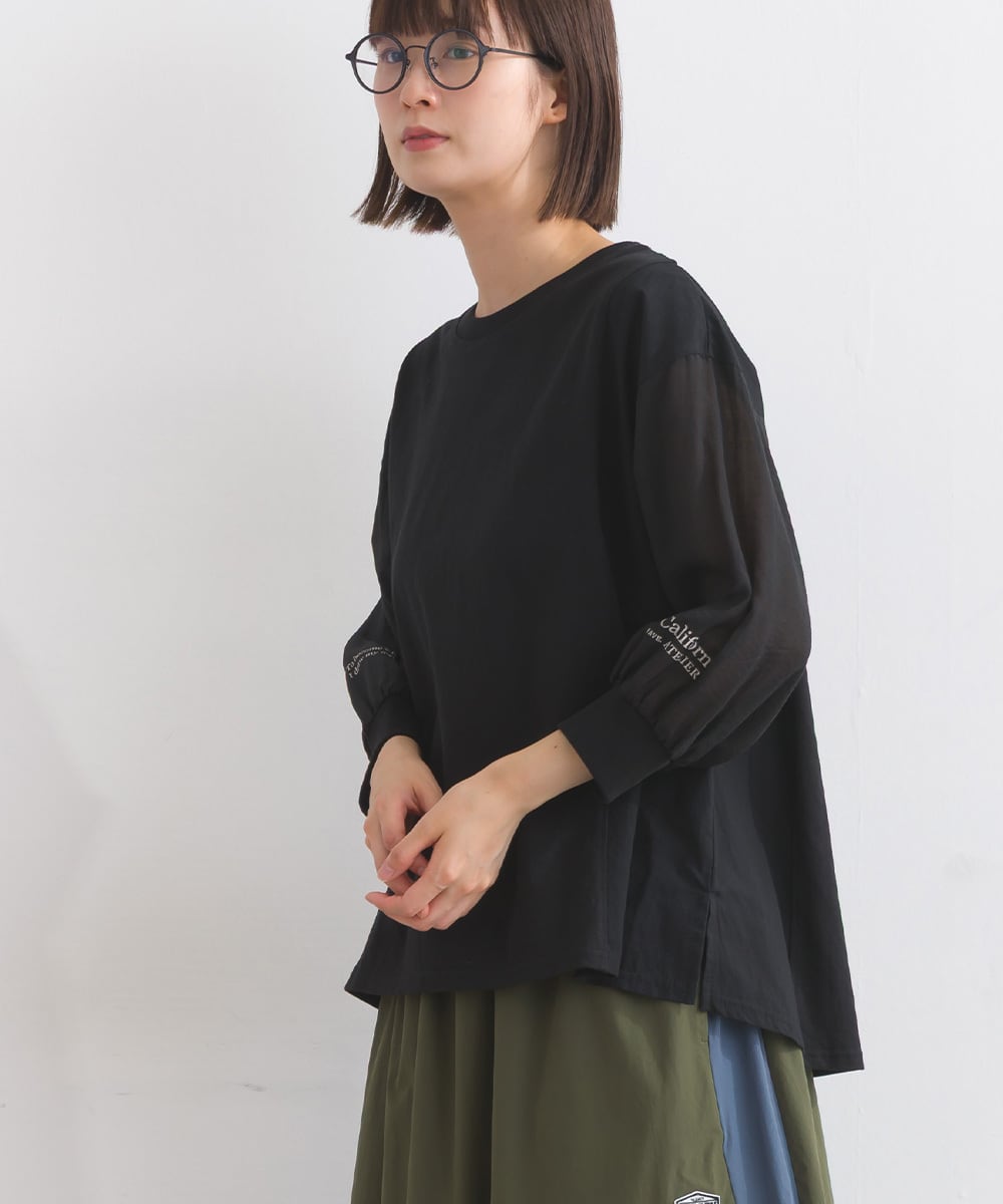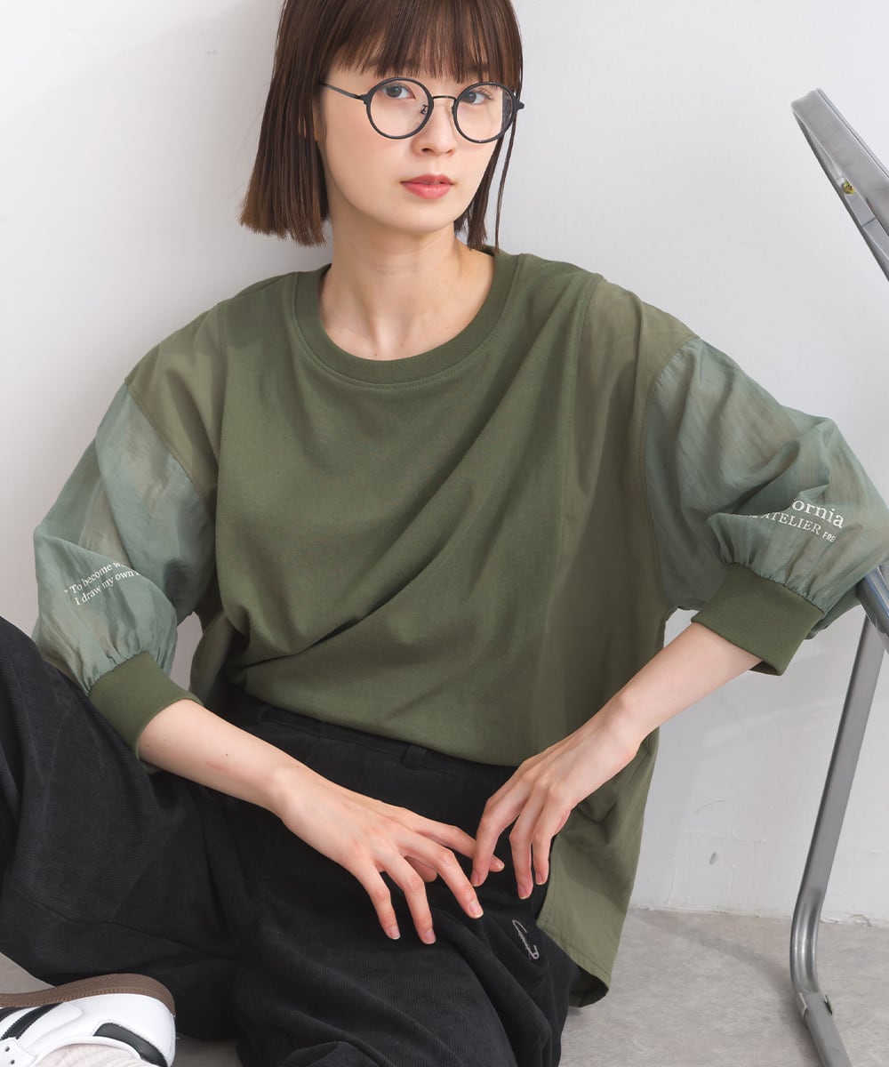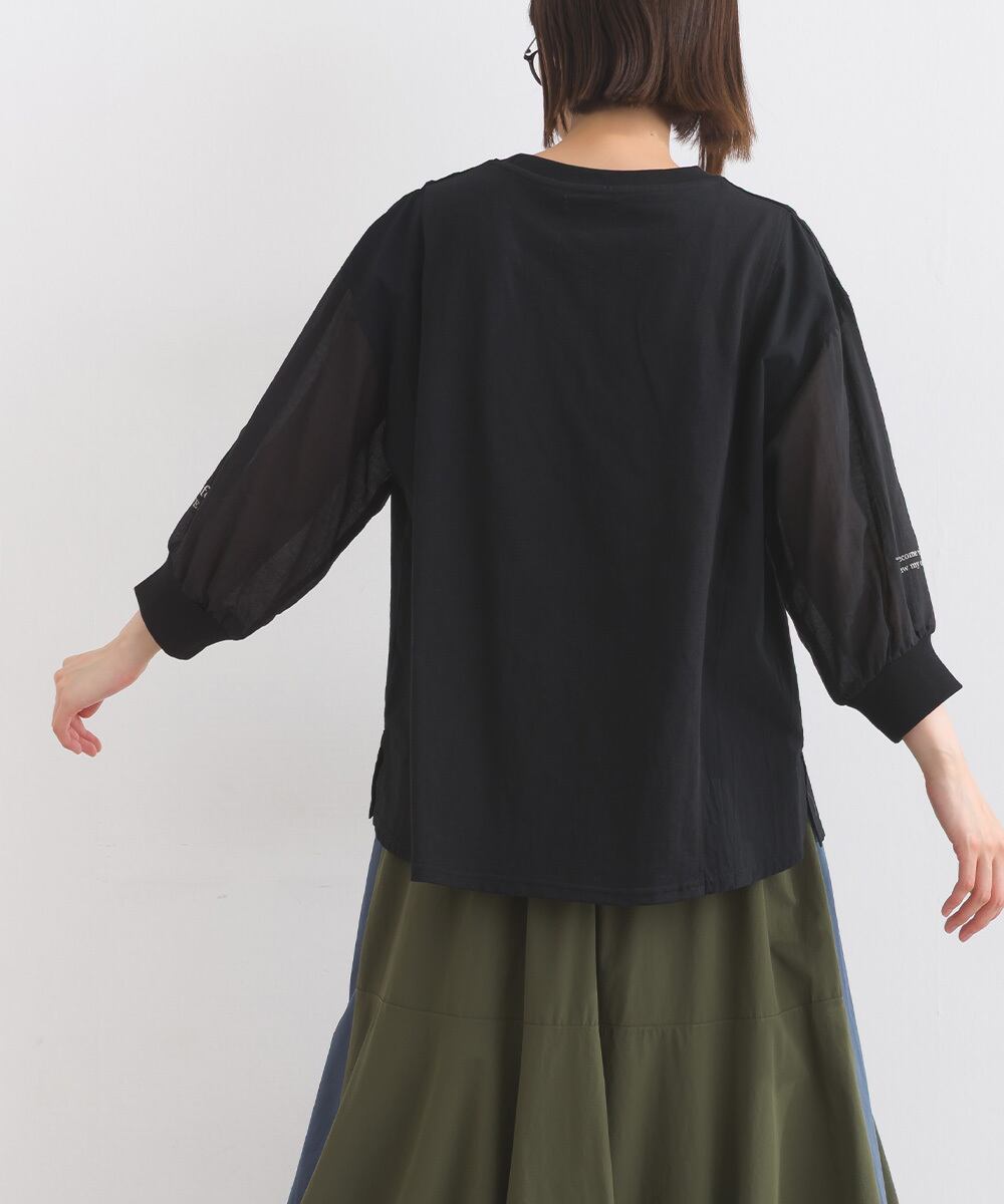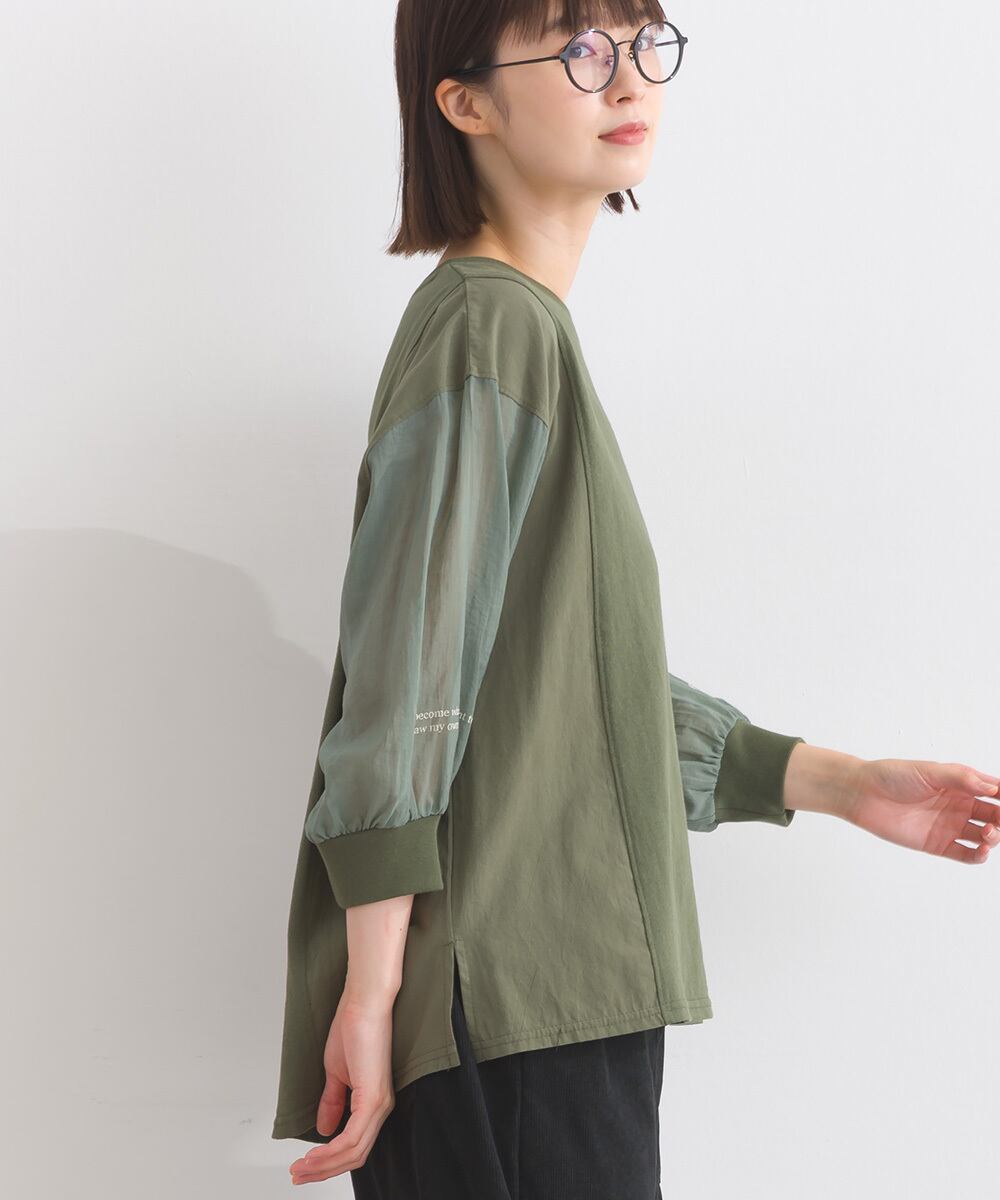 2025秋新作 2025SS 晩夏 AUTUMN 秋 秋Tシャツ 再入荷 再生産 オーバーサイズ ワンマイルウエア ミセス ゆったり iriey アイリー ナチュラル カジュアル カットソー プルオーバー デザインTシャツ デザインプルオーバー 切替プルオーバー 異素材プルオーバー 異素材 異素材切替 布帛切替 メンズライク 綿混 コットン 人気