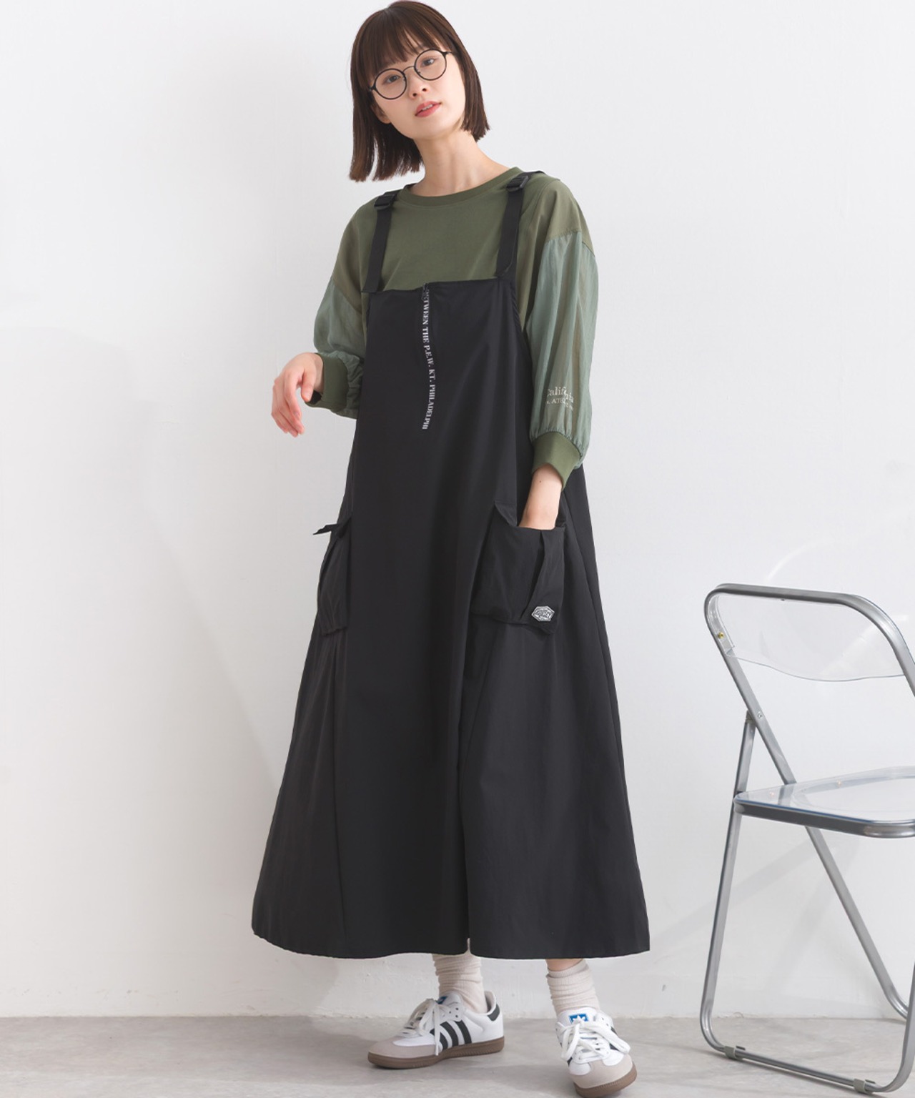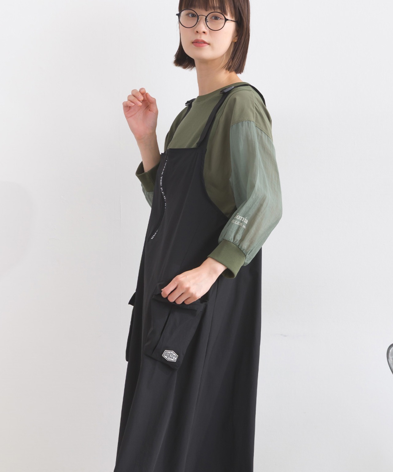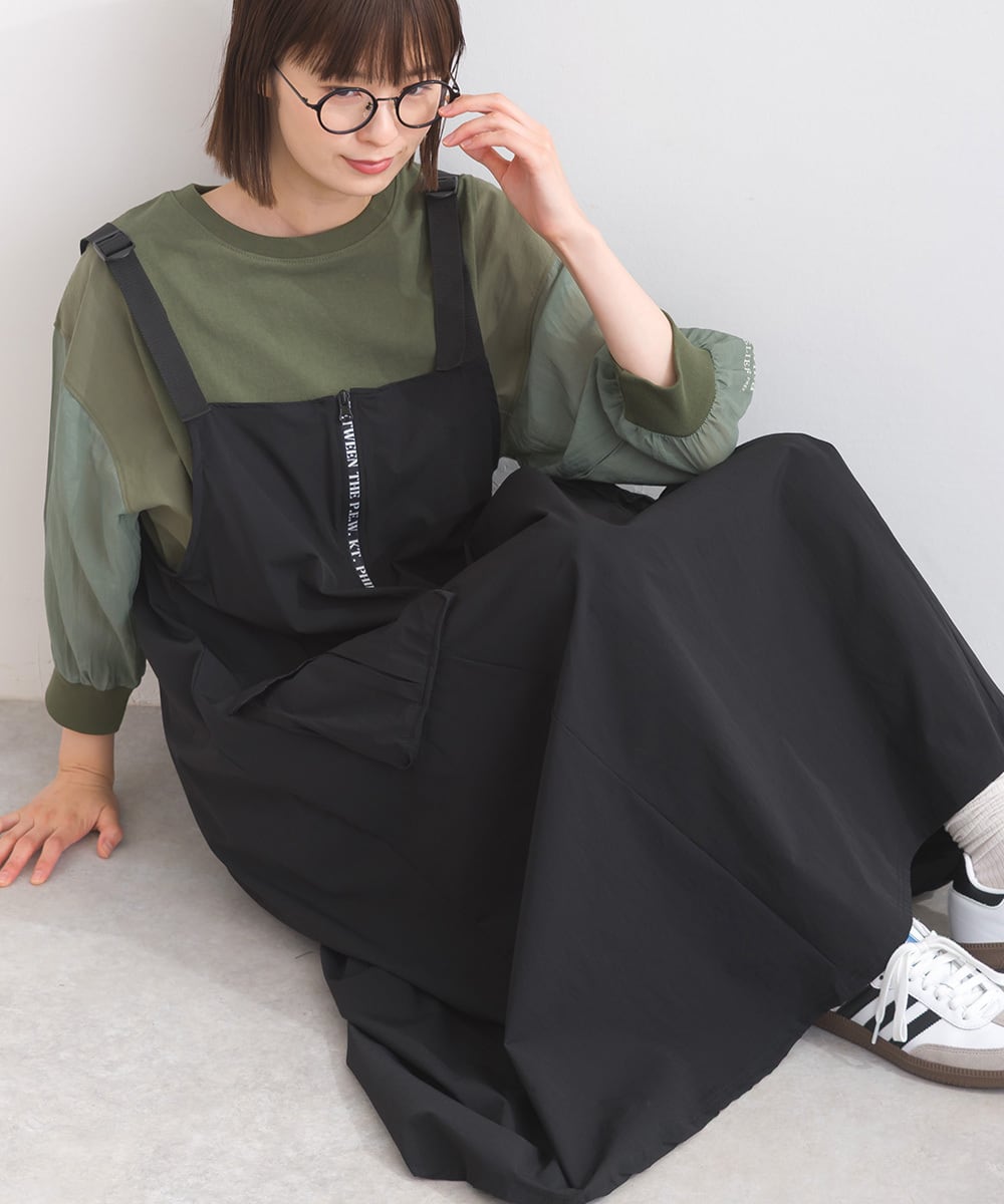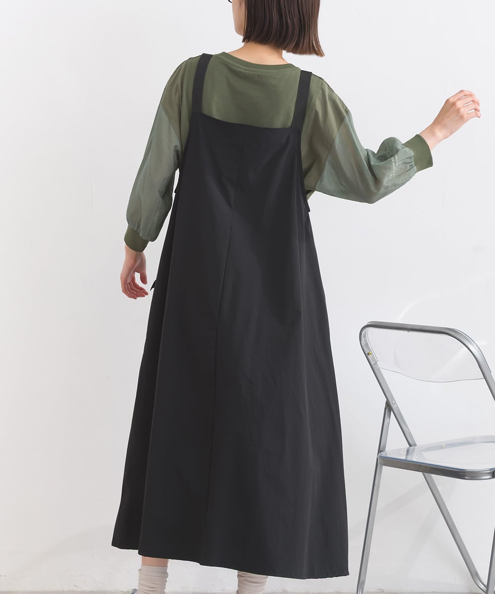 2025春夏新作 2025SS オーバーサイズ ワンマイルウエア iriey アイリー カジュアル ナチュラル ミセス ゆったり 体型カバー ナイロン ストレッチナイロン ナイロンジャンスカ モードジャンスカ デザインジャンスカ ワンピ ジャンスカ 人気
