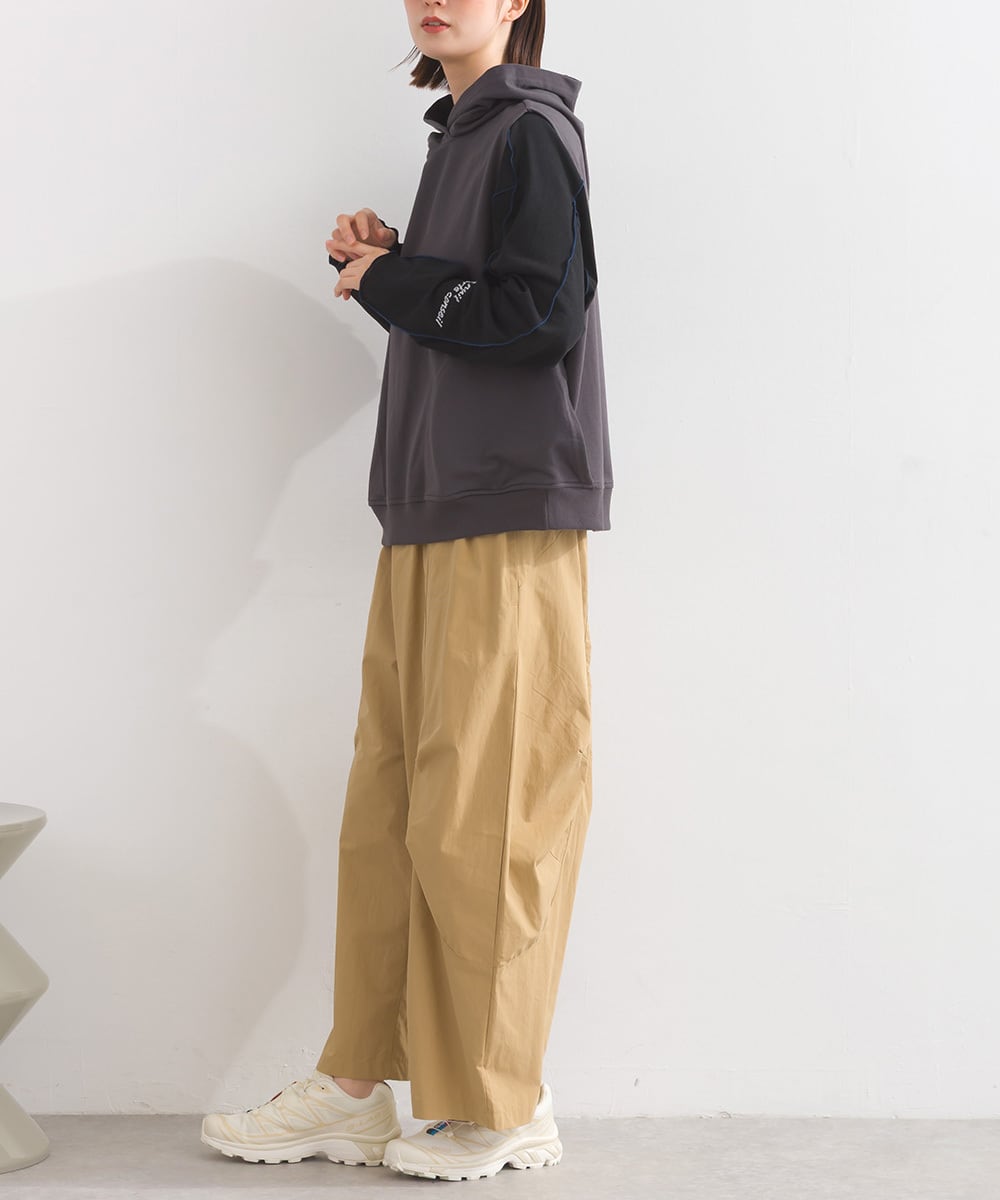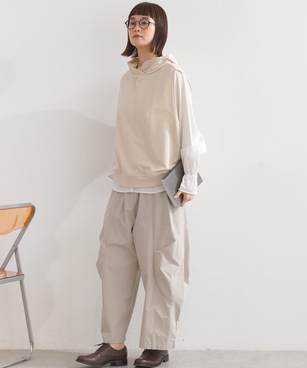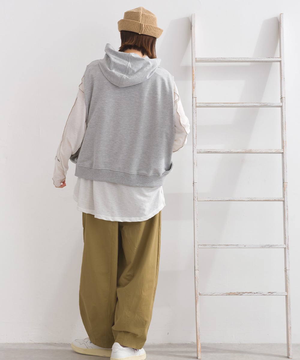 2025秋冬新作 2025AW オーバーサイズ ワンマイルウエア ミセス ゆったり iriey アイリー ナチュラル カジュアル カットソー プルオーバー デザインベスト フードベスト パーカーベスト メンズライク 綿混 コットン 人気