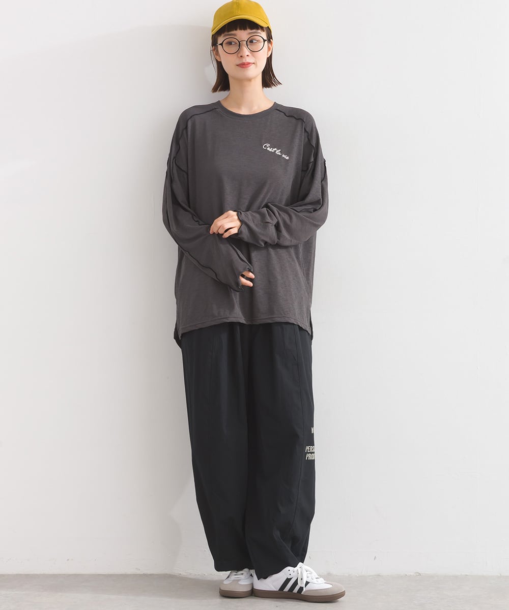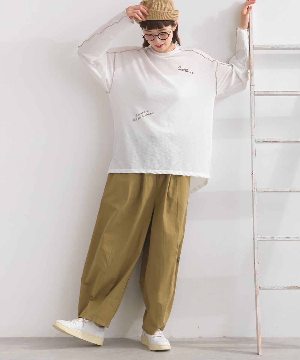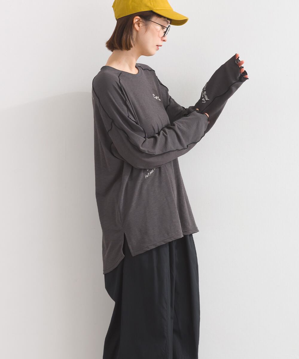2025秋冬新作 2025AW オーバーサイズ ワンマイルウエア iriey アイリー ナチュラル カジュアル 体型カバー カットソー カットプルオーバー プルオーバー ロンT メロウ ランダムロゴ デザインT