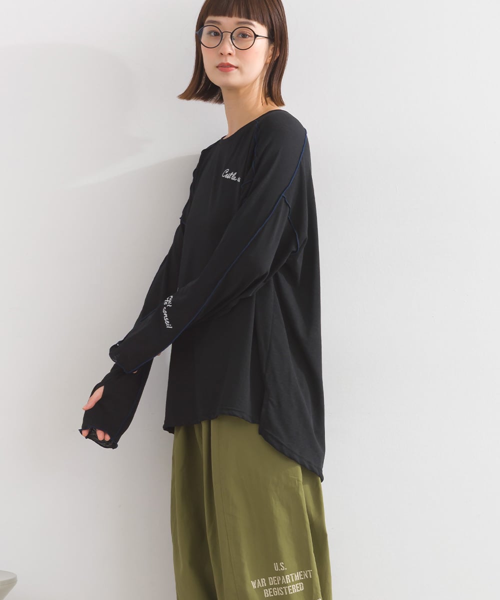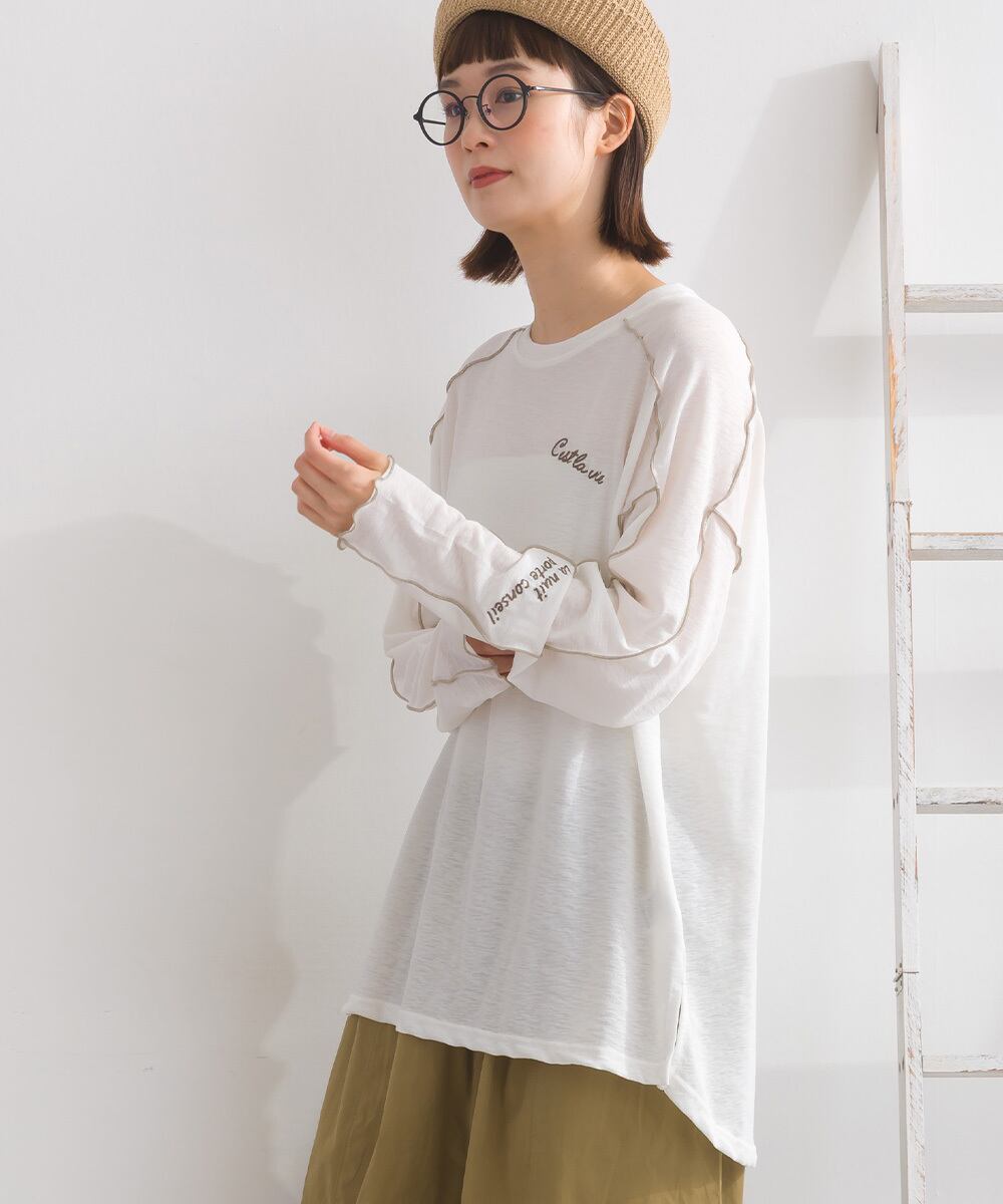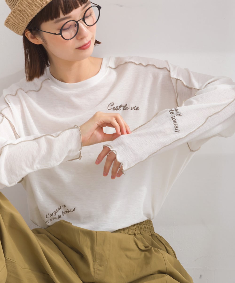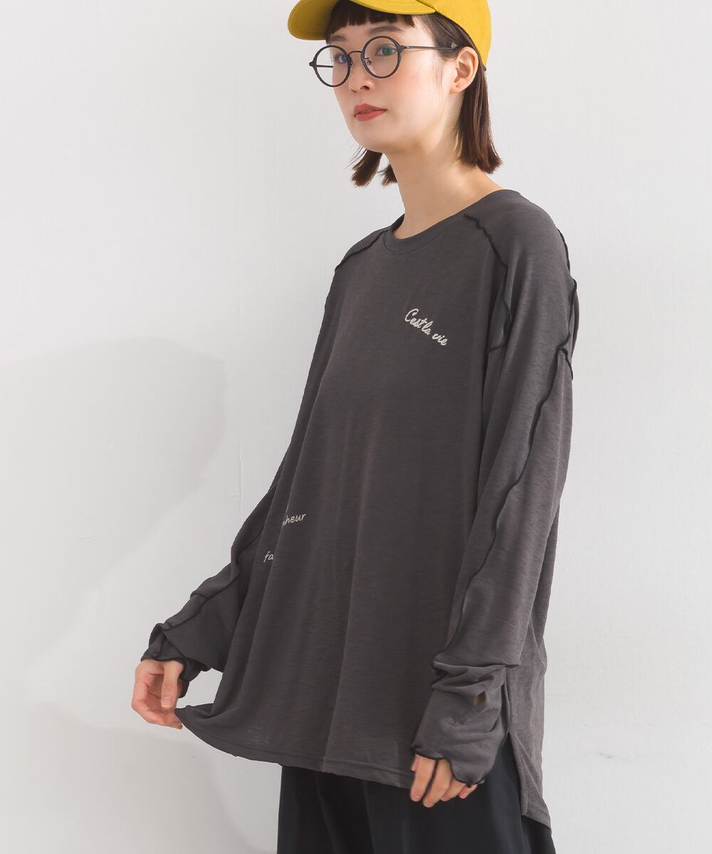 2025秋冬新作 2025AW オーバーサイズ ワンマイルウエア iriey アイリー ナチュラル カジュアル 体型カバー カットソー カットプルオーバー プルオーバー ロンT メロウ ランダムロゴ デザインT