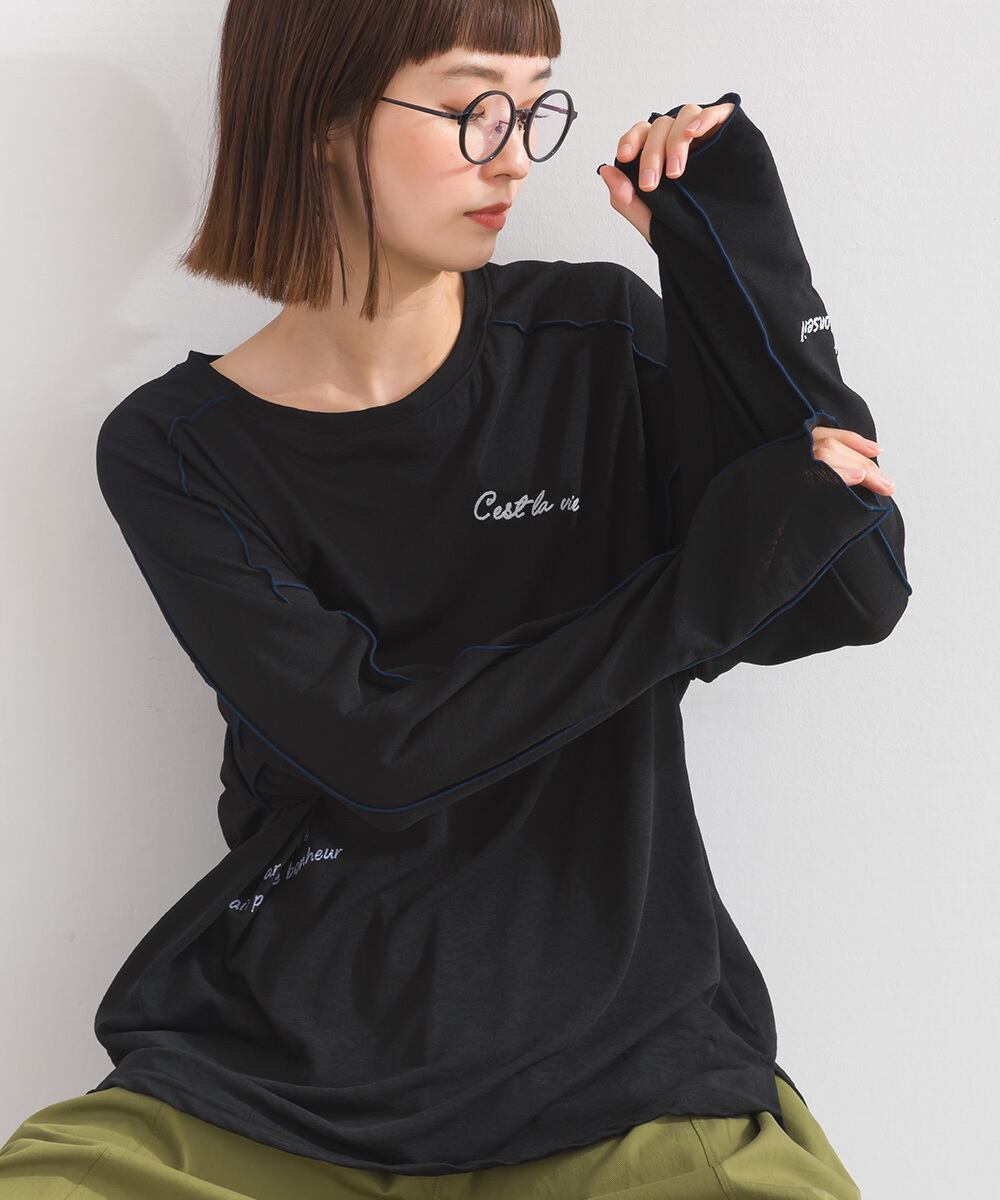 K53063 スラブシアーメロウ切替ランダムロゴ長袖Tシャツ / Slub Sheer Mellow-Trim Random Logo Long Sleeve T-shirt