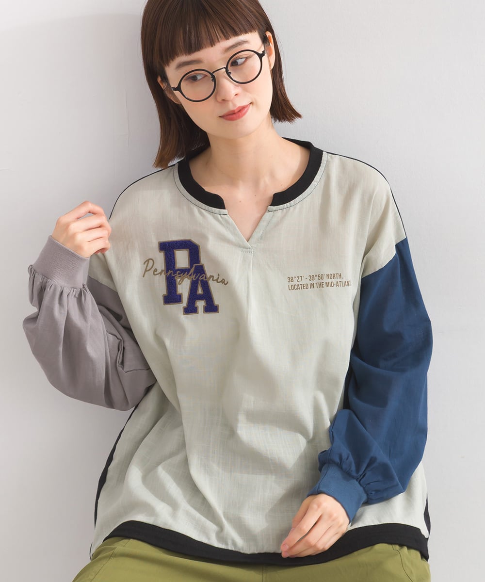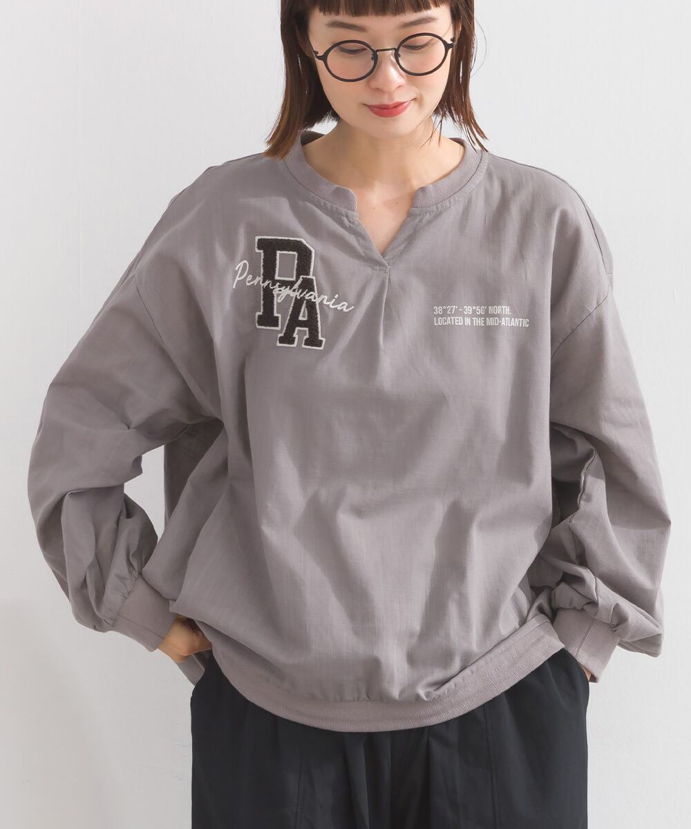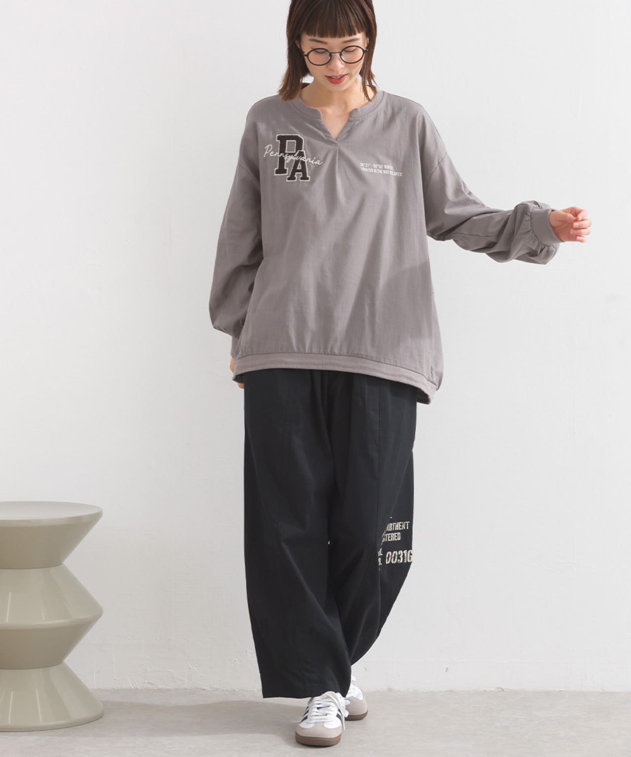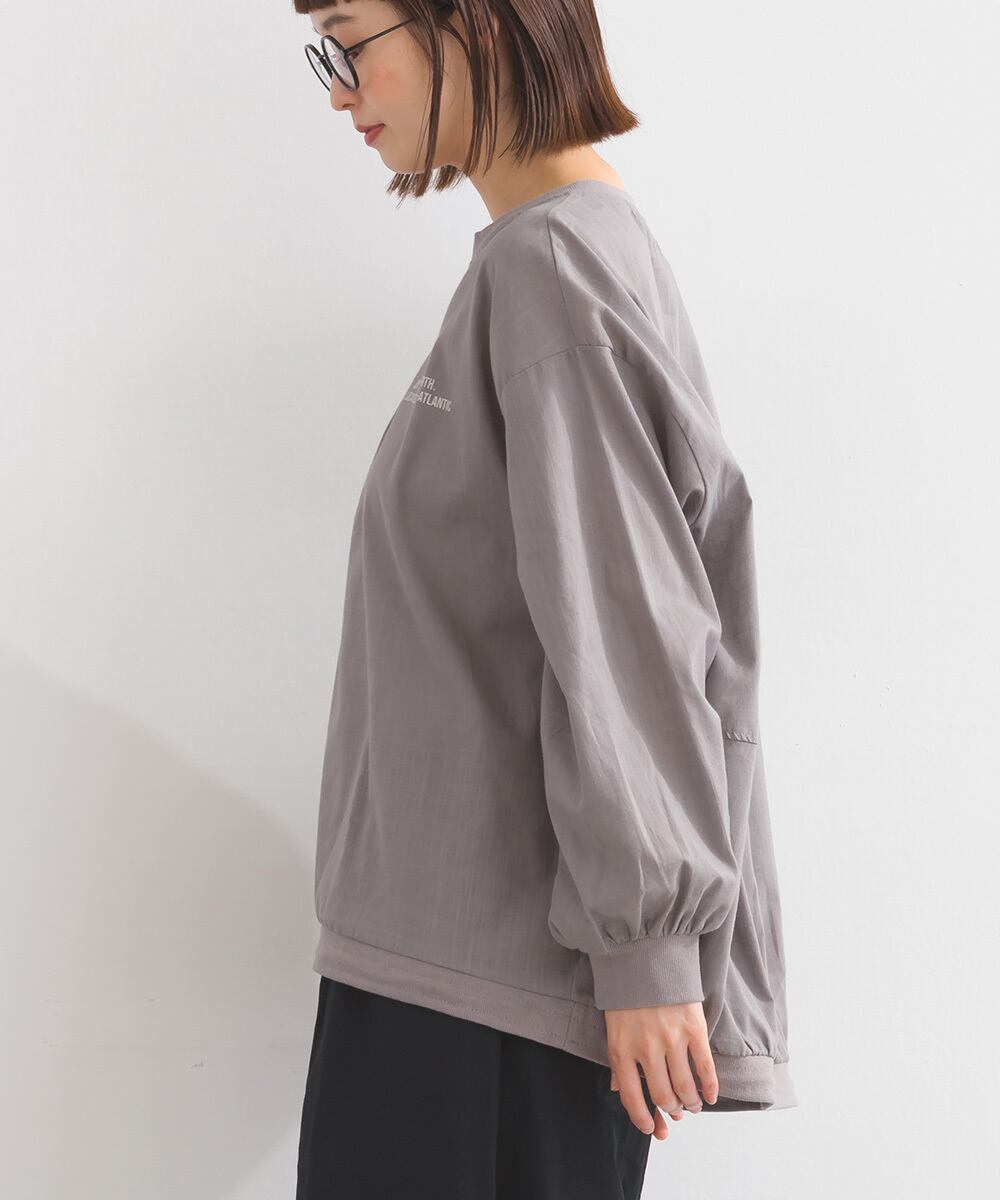 2025秋新作 2025AW オーバーサイズ ワンマイルウエア iriey アイリー ナチュラル カジュアル ゆったり 体型カバー ブラウス ロゴTブラウス ロゴプルオーバー ランダムロゴ マルチロゴ Tブラウス メンズライク 綿 コットン 人気