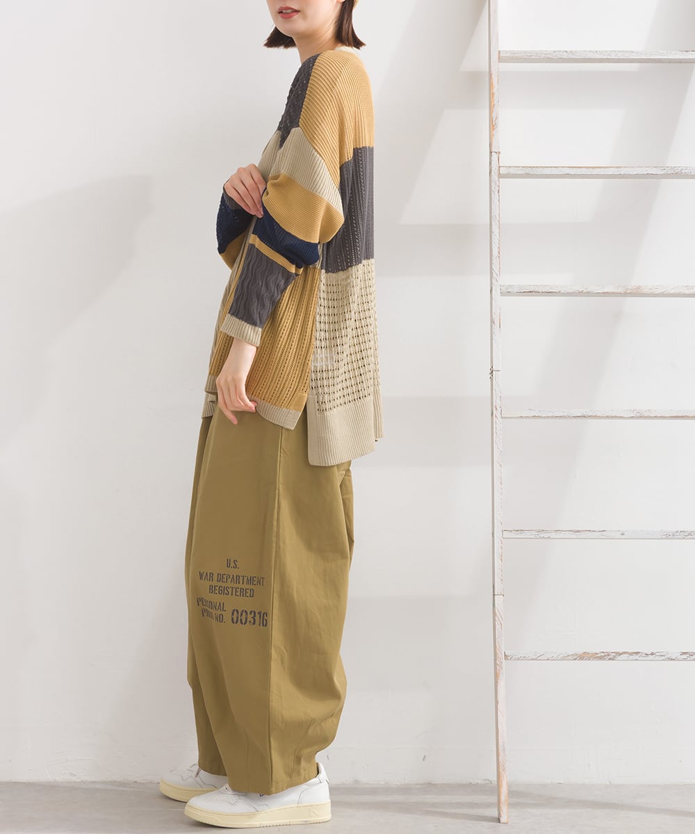 柄スカートやカラーボトムと合わせて、アート感のある大人カジュアルに。