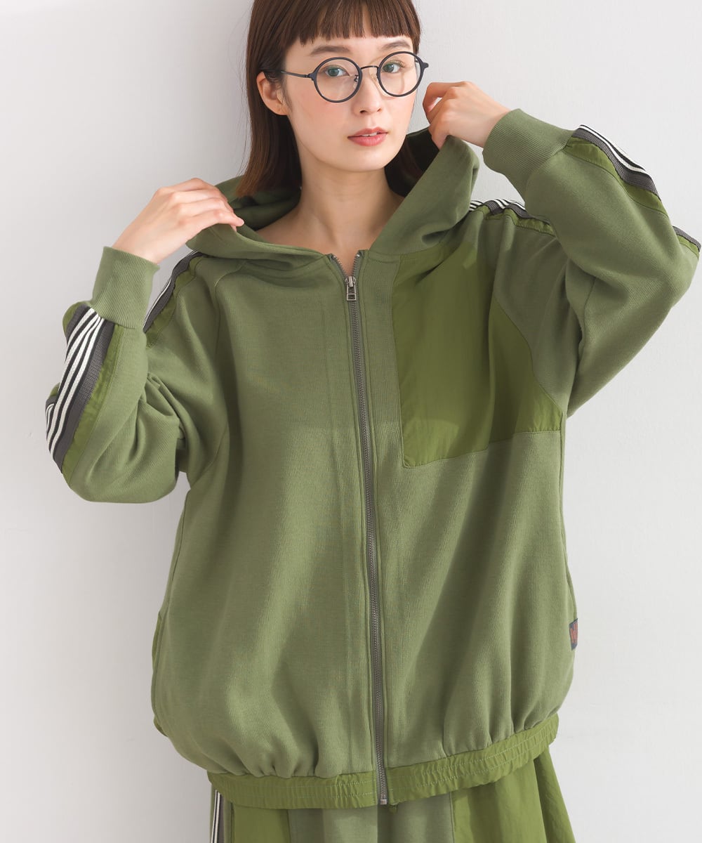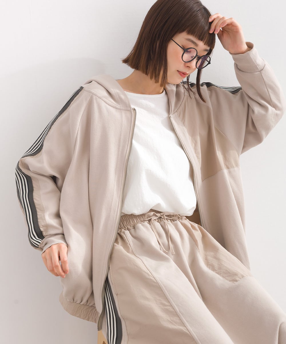 K53040 ポンチトラックリメイク風ジップパーカー / Ponte Track-Style Remake Zip Hoodie