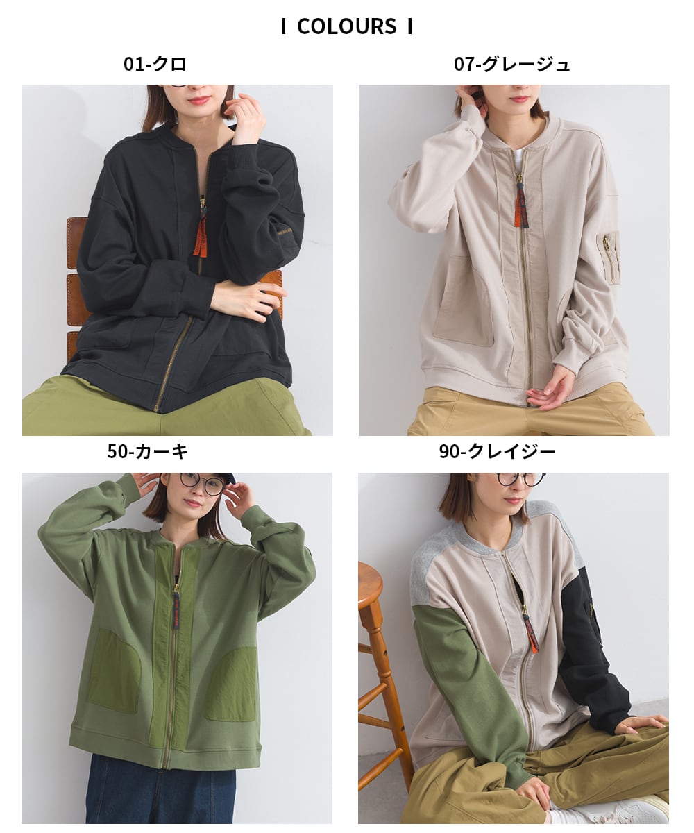 K53039 異素材切替ポンチZIPブルゾン / Mixed Fabric Ponte ZIP Blouson (残りわずか)