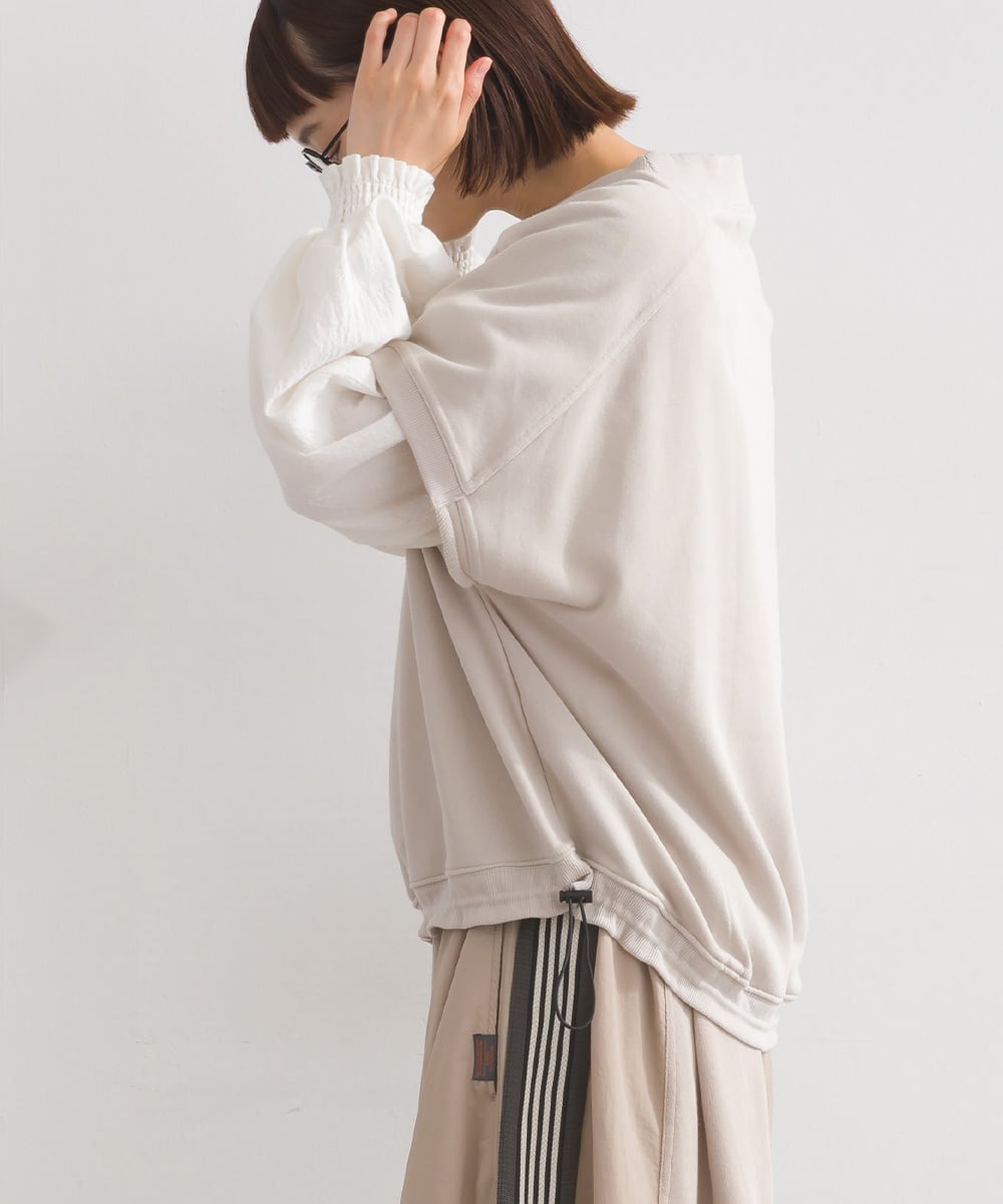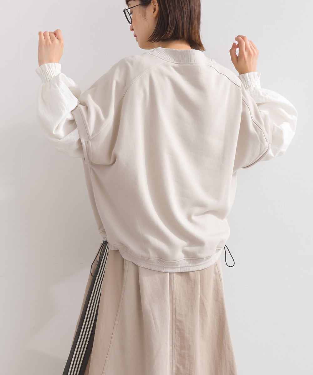 肌触りが心地よい、コットンを多く混紡した裏毛素材を使用。空気を含みやすく温かみがあり、柔らかな質感でリラックス感のある着心地を叶えます。