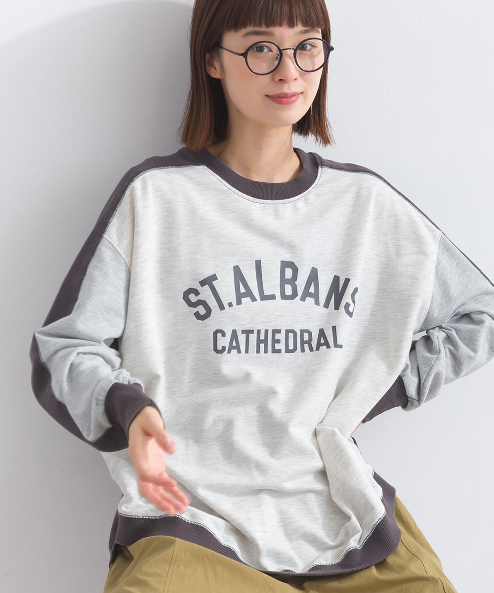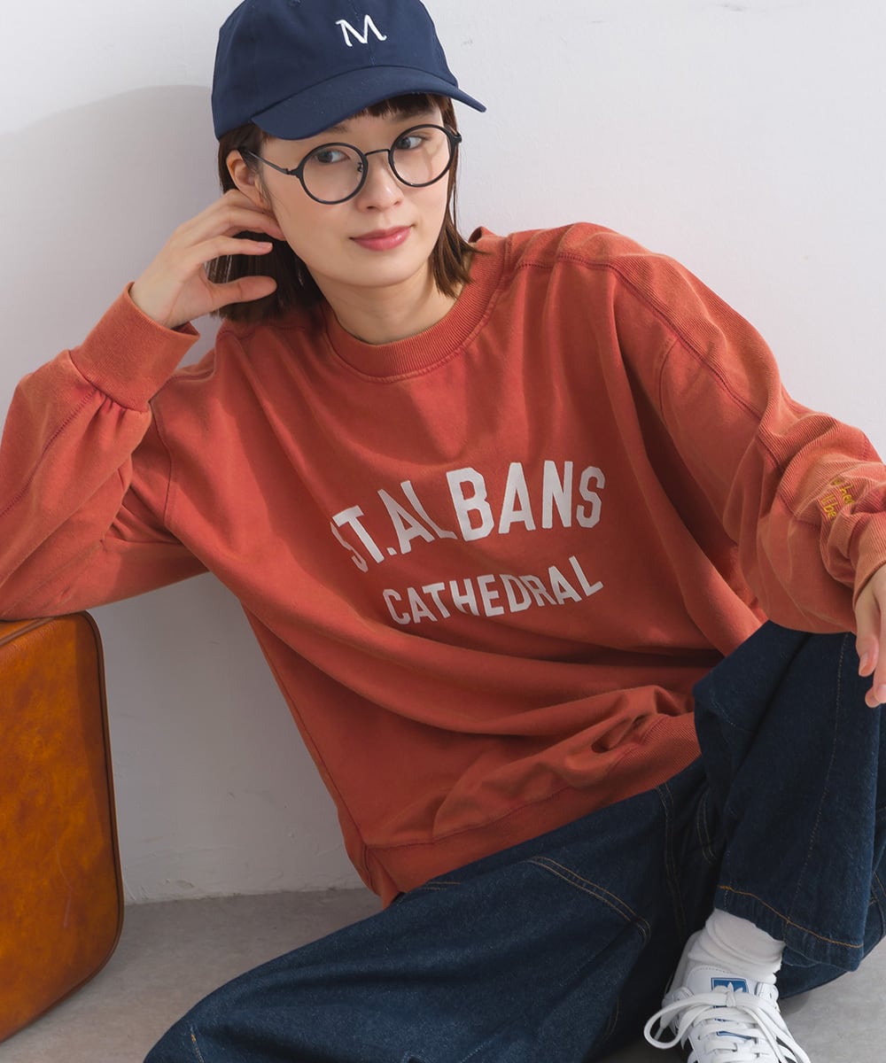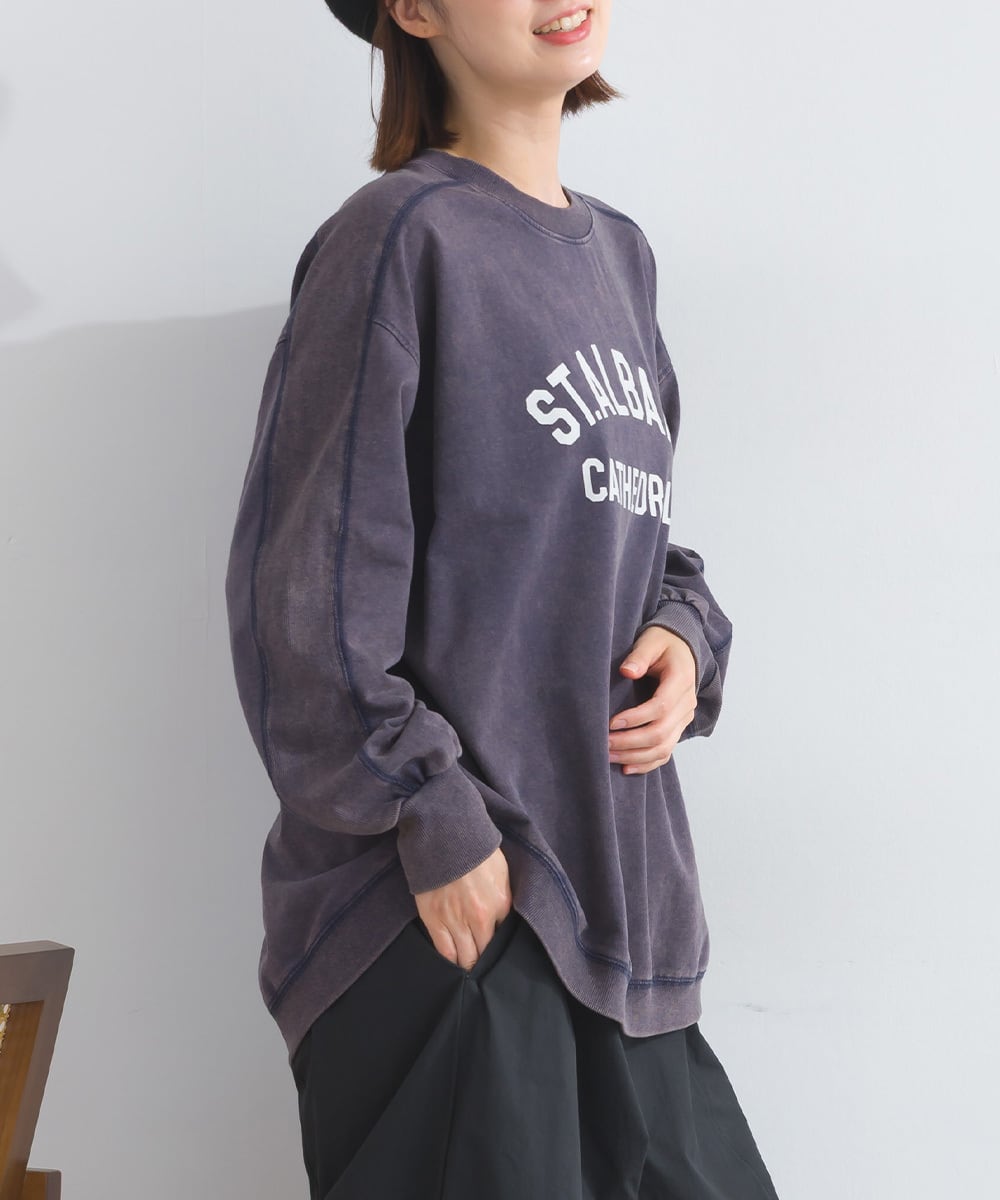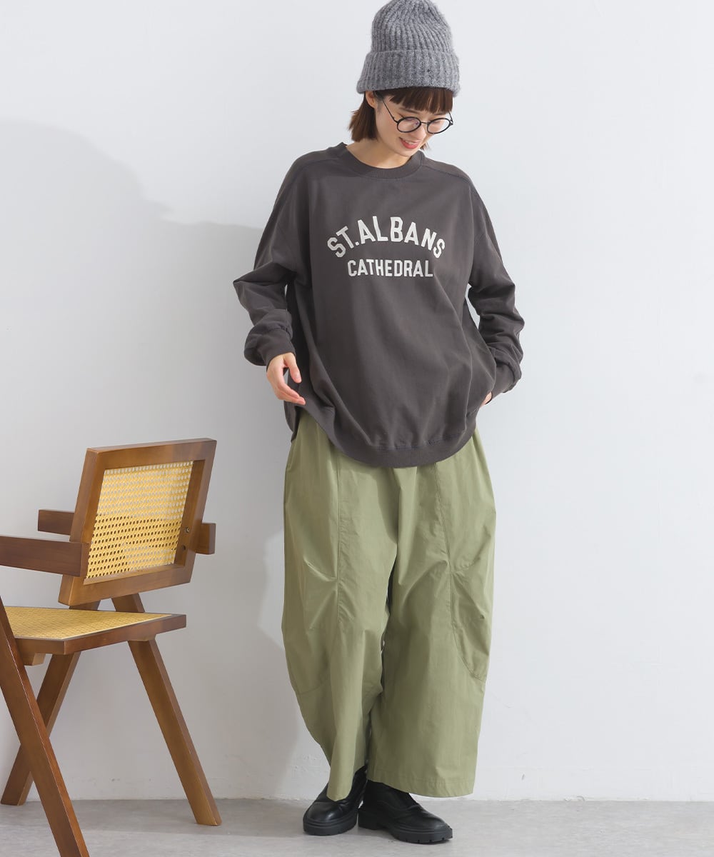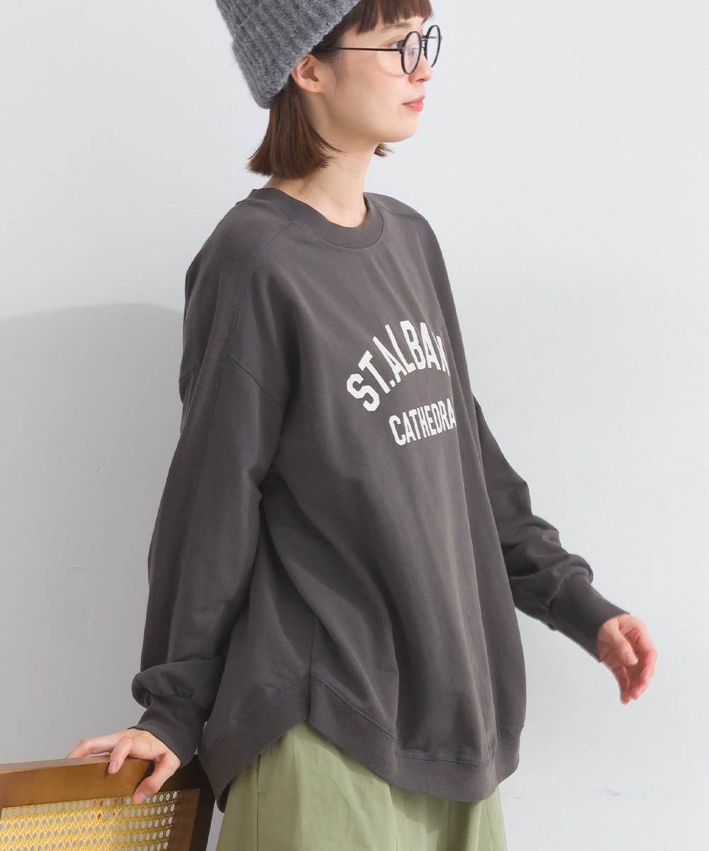 2025秋冬新作 2025AW オーバーサイズ ワンマイルウエア ミセス ゆったり iriey アイリー ナチュラル カジュアル カットソー ロゴスウェット ロゴスエット カレッジロゴ アメカジ スウェット スエット トレーナー メンズライク 綿 コットン 人気