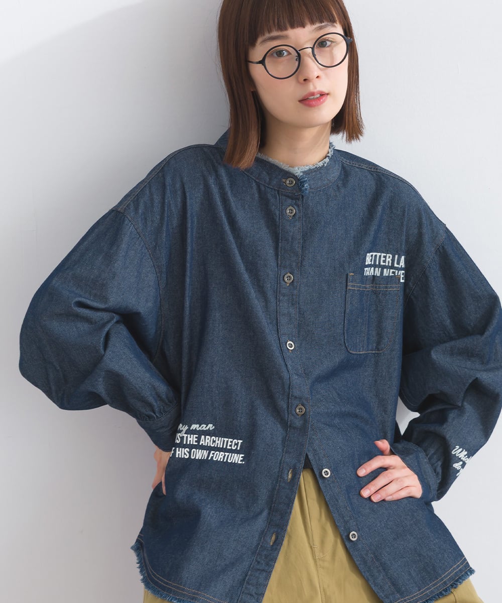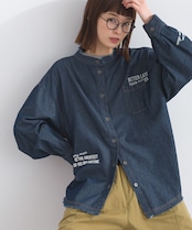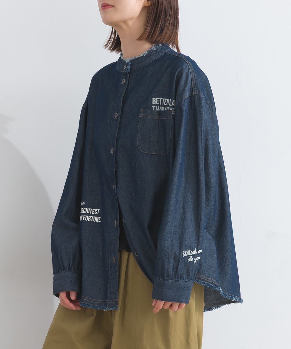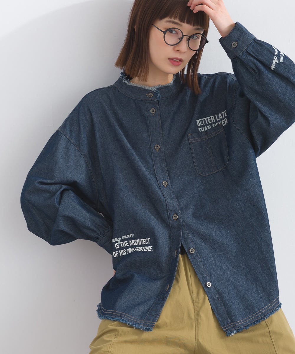 シャツ ロゴシャツ デニムシャツ ランダムロゴ マルチロゴ アメカジ メンズライク 綿 コットン 人気