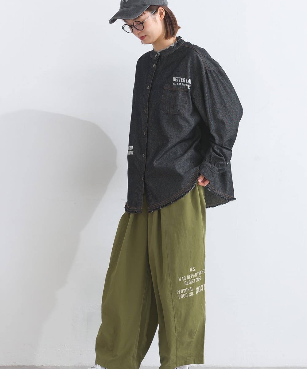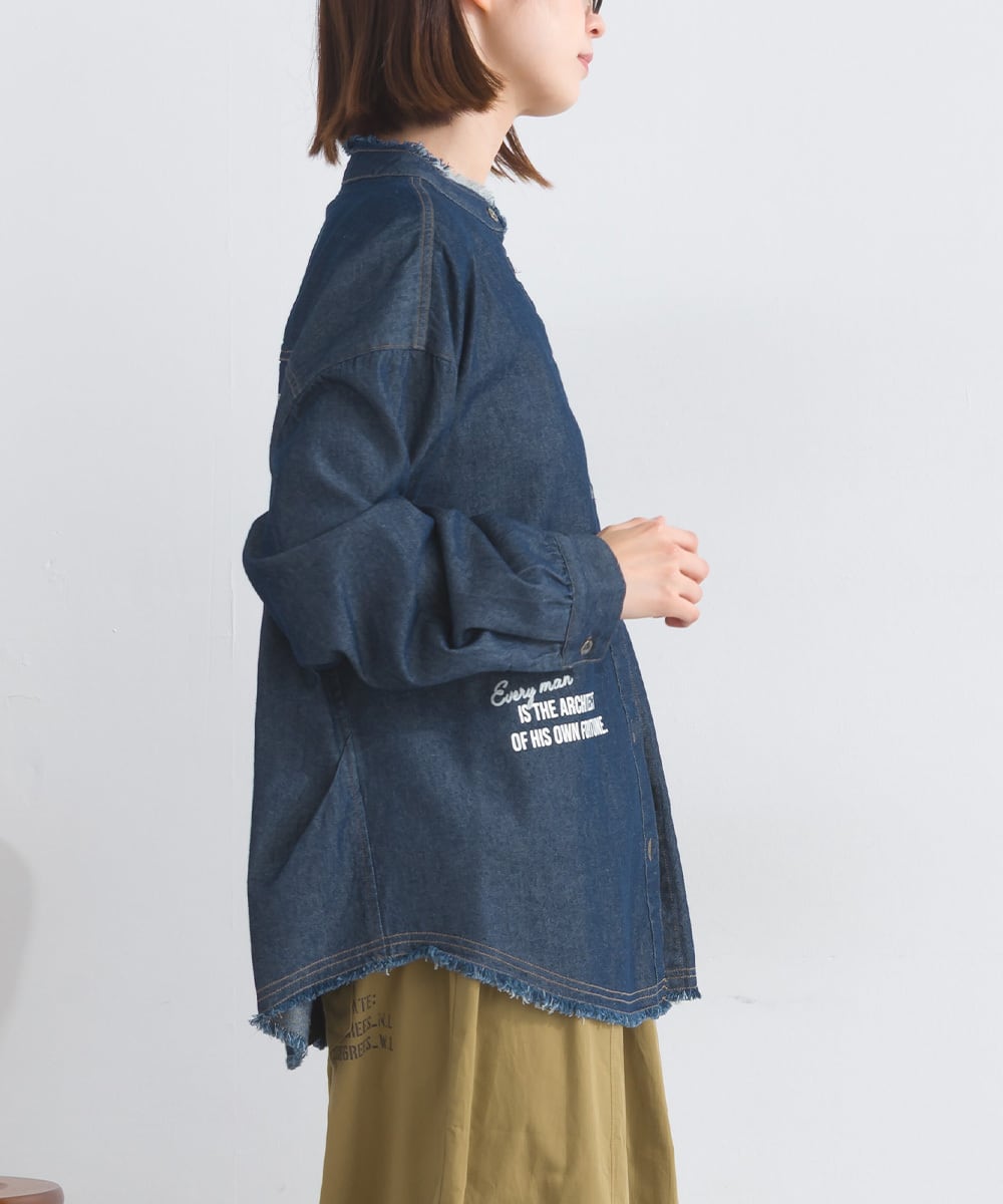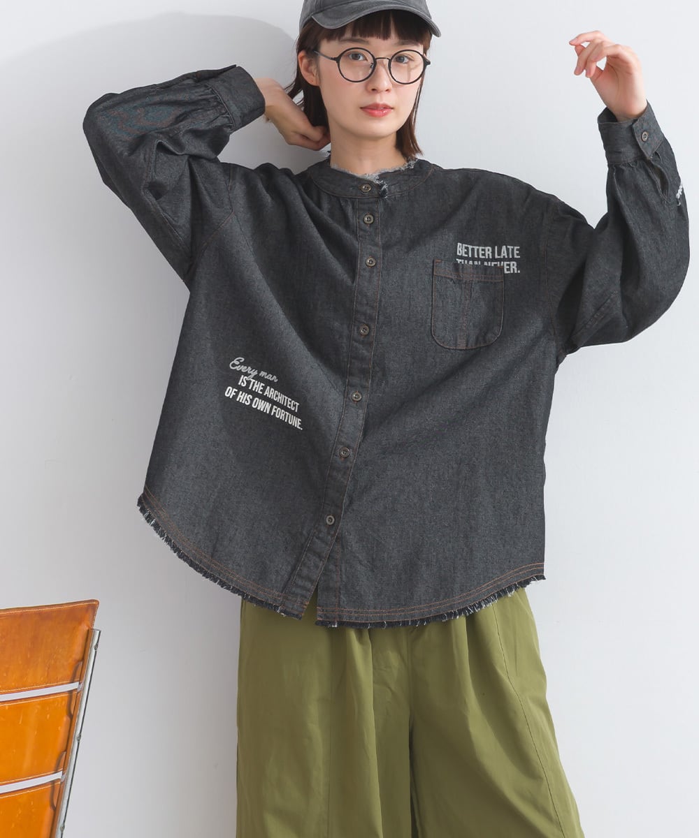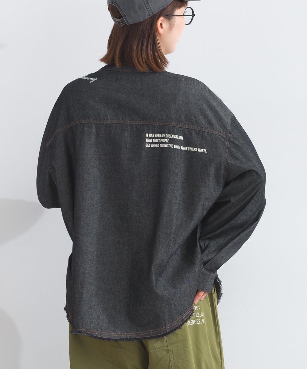 シャツ ロゴシャツ デニムシャツ ランダムロゴ マルチロゴ アメカジ メンズライク 綿 コットン 人気
