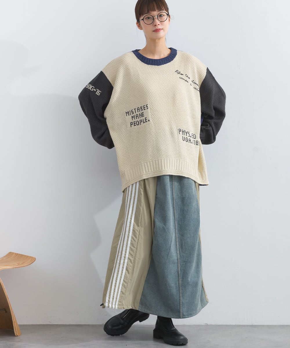 テーパードパンツや無地スカートと合わせると大人っぽく仕上がります。