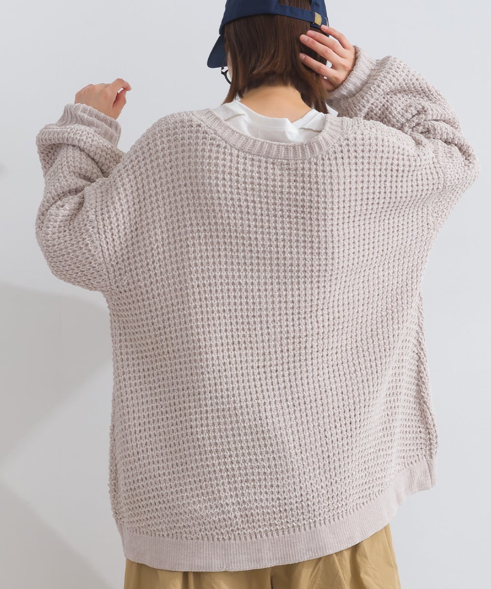 やや太めの5ゲージで編まれたモールニットは、見た目にも温かく、肌当たりもやさしい質感。