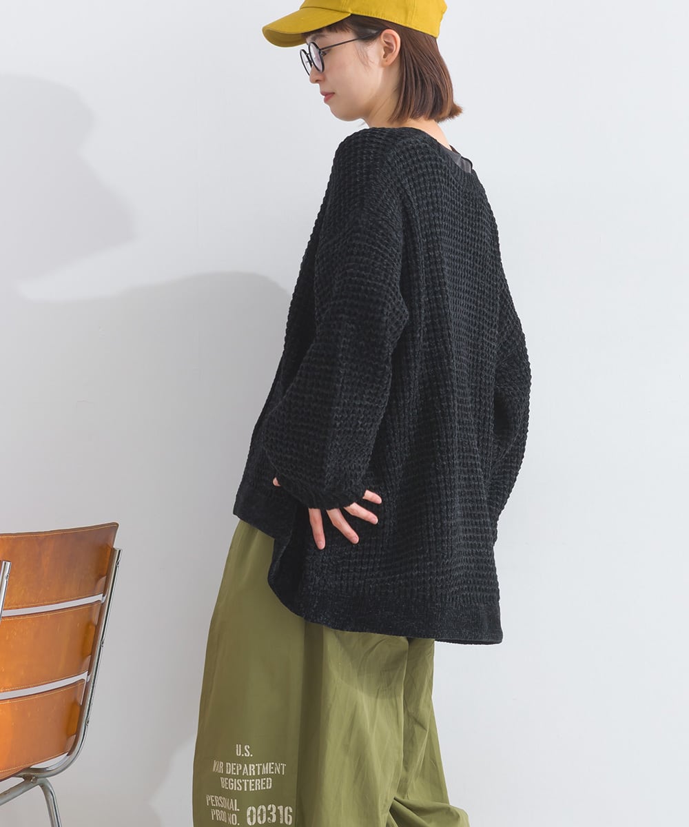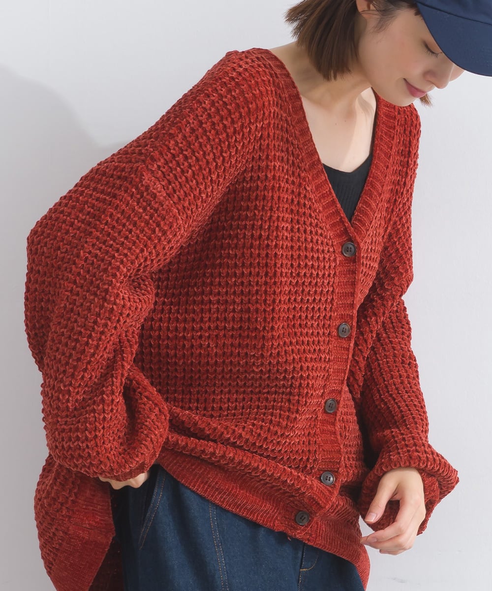 B53021 モール5G 裾スピンドルコクーンVカーディガン / Chenille 5G Hem Spindle Cocoon V-Neck Cardigan