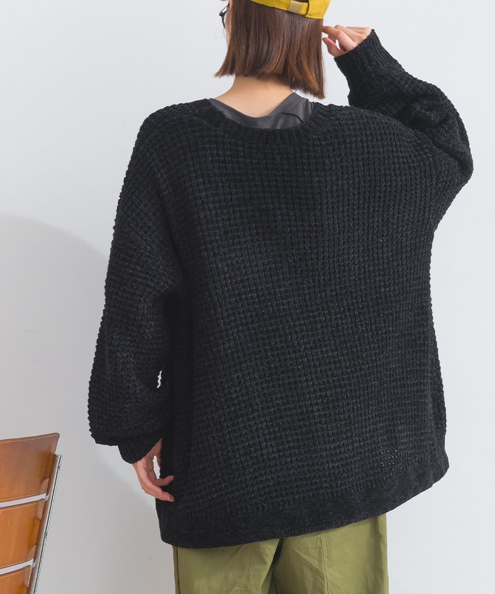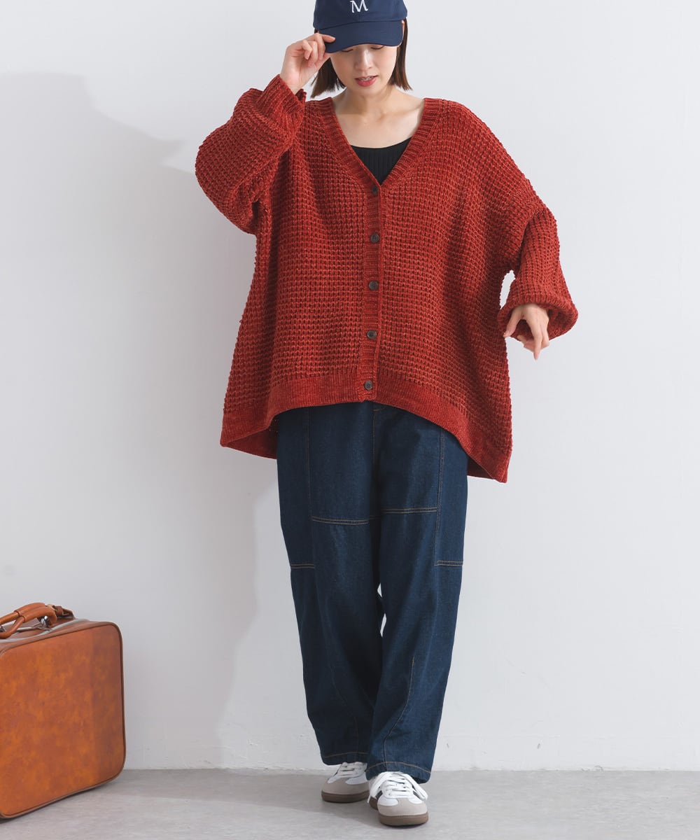 2025秋冬新作 2025AW オーバーサイズ ワンマイルウエア iriey アイリー ナチュラル カジュアル 体型カバー ニットカーデ カーデ モールニット モールカーデ モールヤーン ニット 人気
