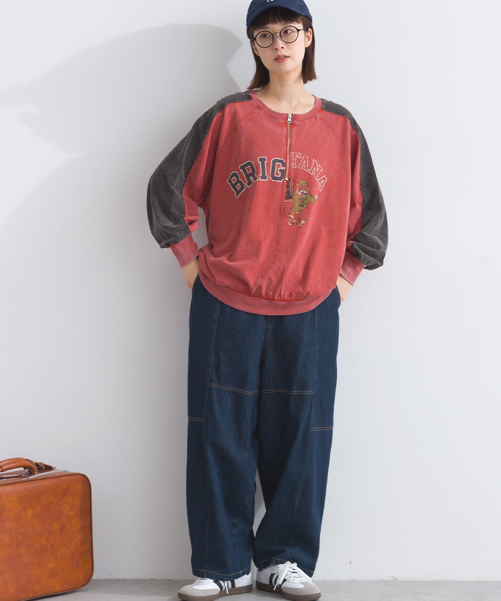 ラグランスリーブ仕様で動きやすく、ゆったりとしたサイジングがこなれた印象に。