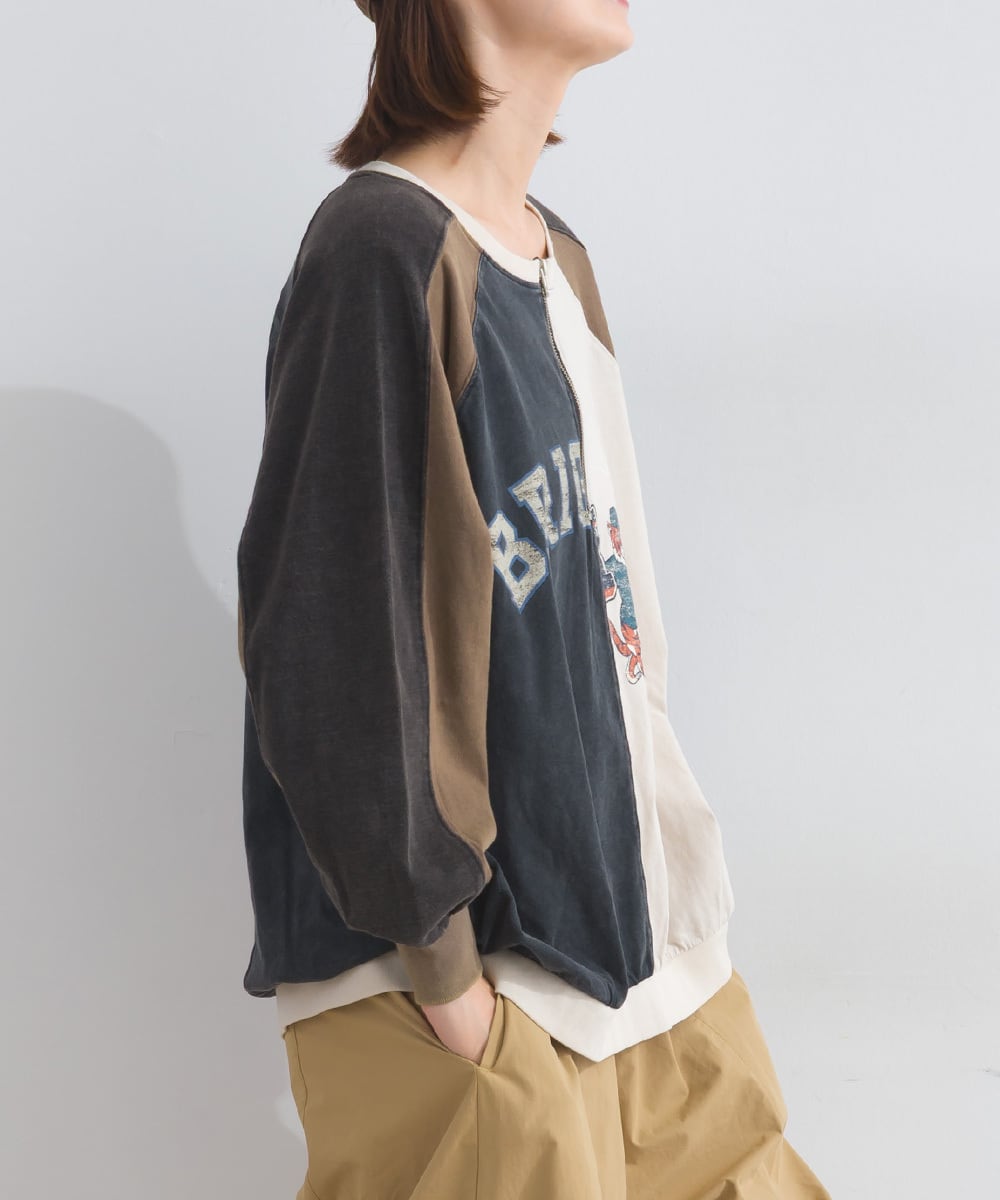 K53071 スノーウォッシュ天竺リメイク風ハーフジッププルオーバー / Snow-Wash Jersey Remake-Style Half Zip Pullover (残りわずか)