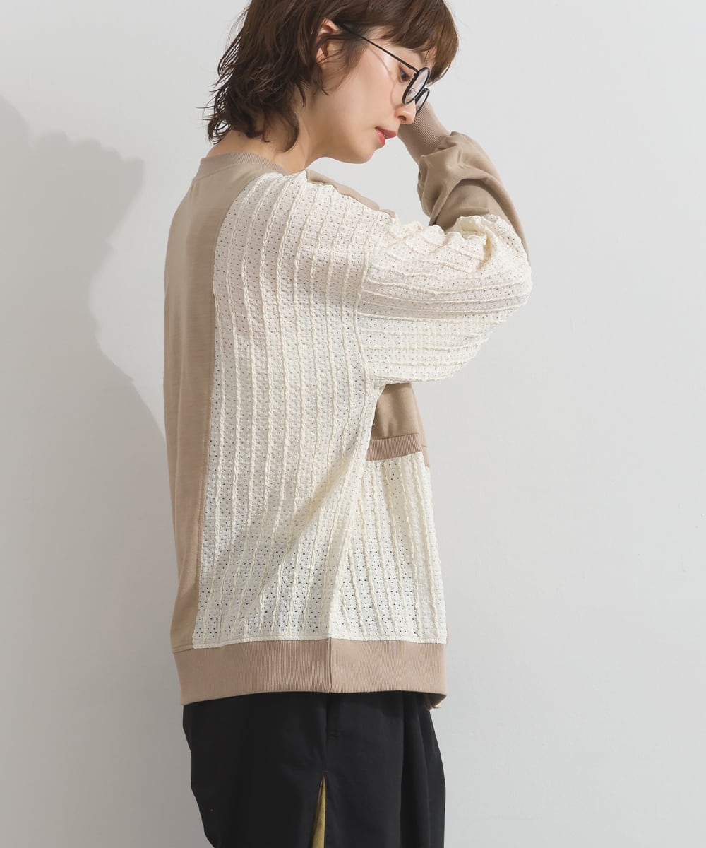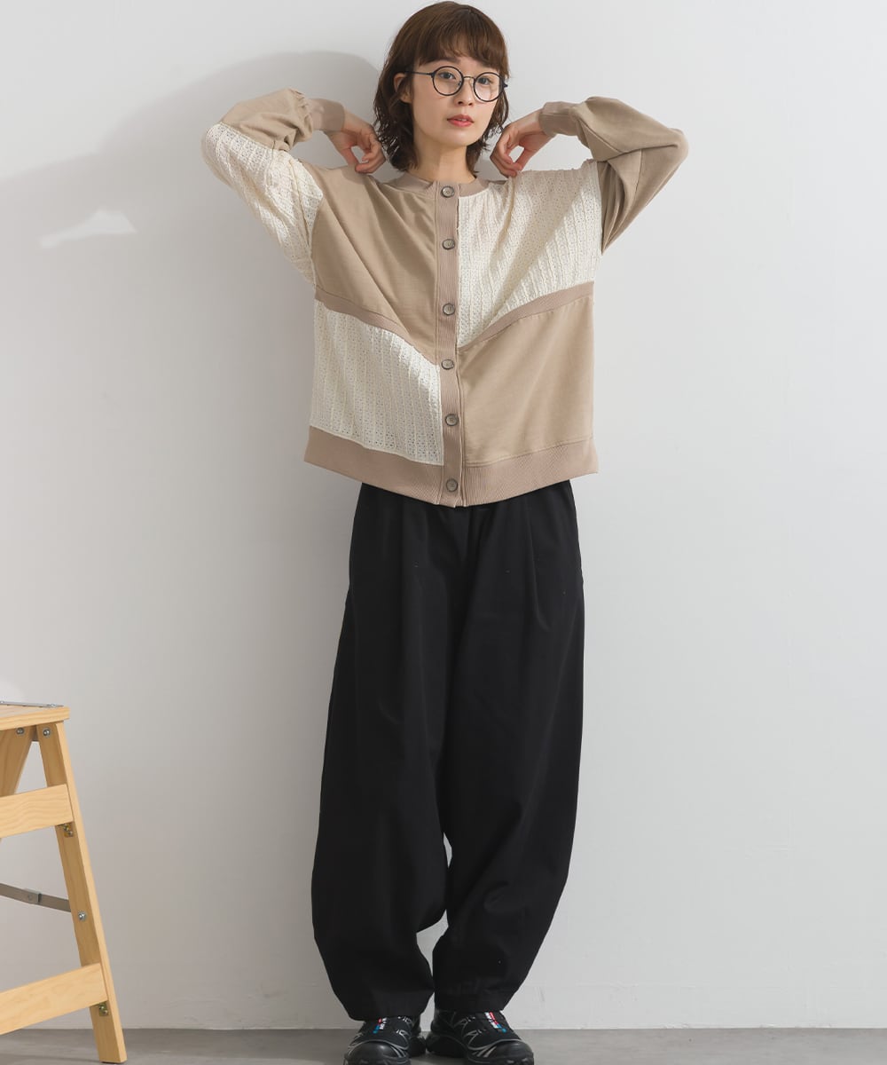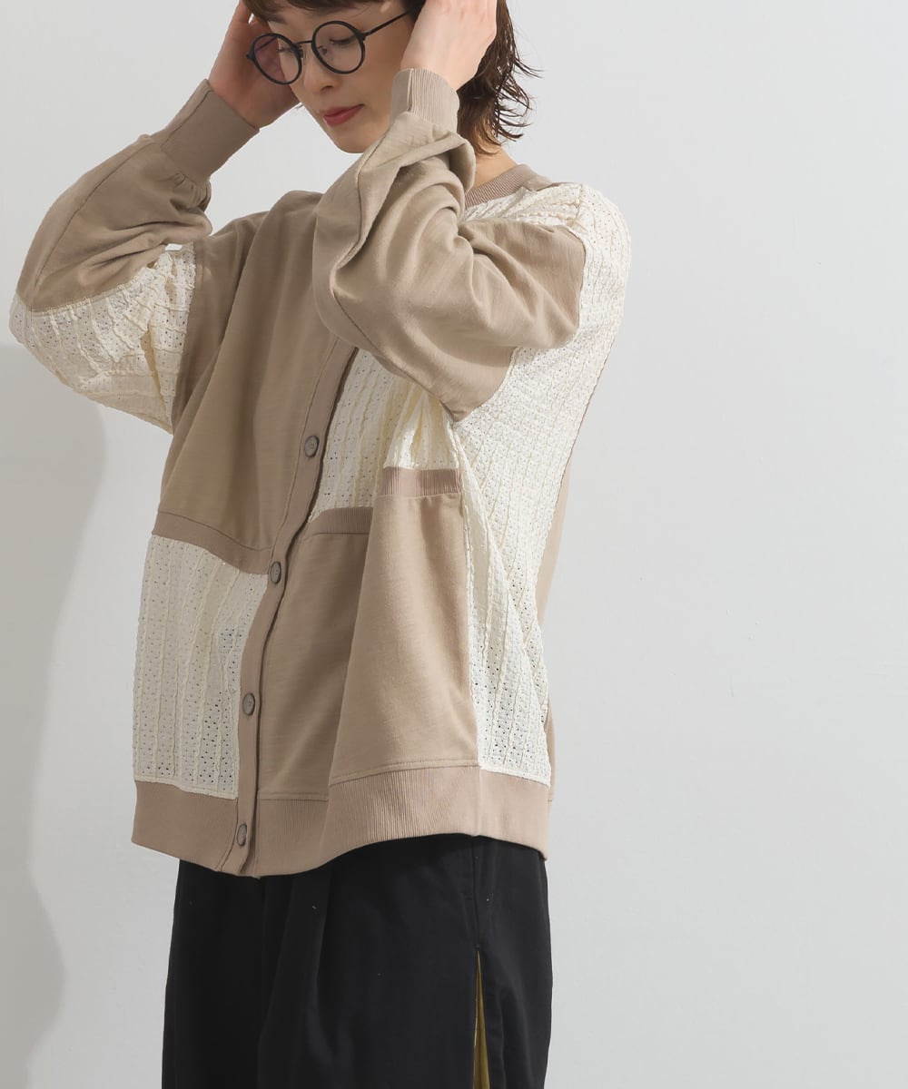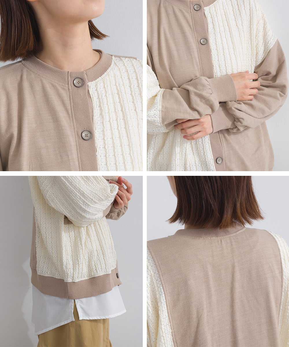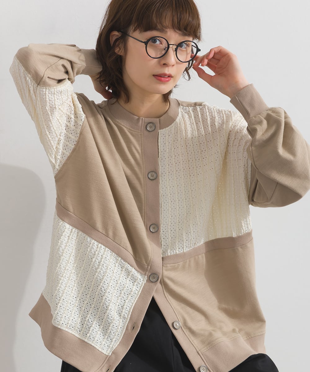 梨地異素材ブロック切替2WAYカーディガン