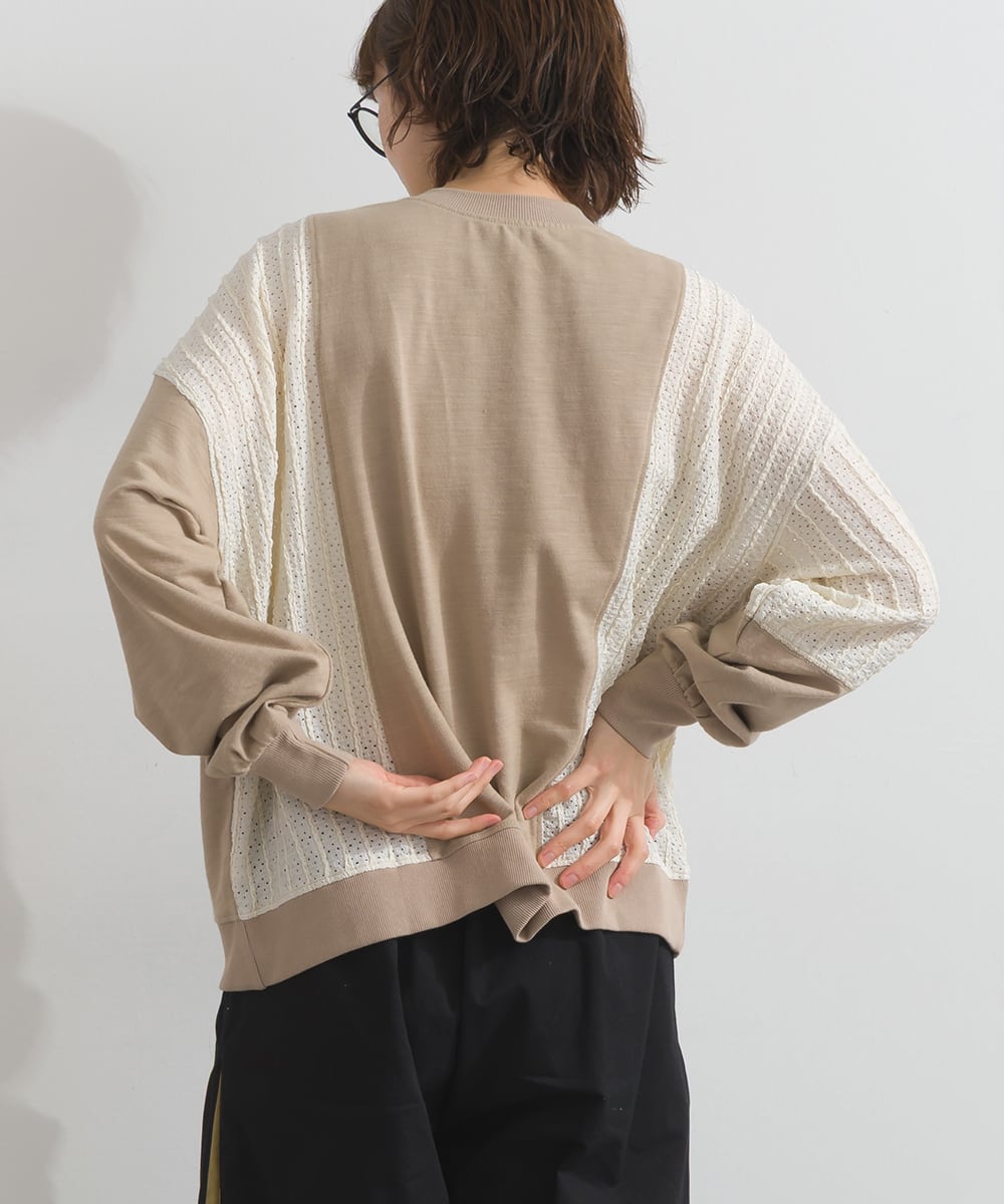 2025秋新作 2025新作 秋 オーバーサイズ ワンマイルウエア iriey アイリー ナチュラル カジュアル 体型カバー カットソー カットカーデ カーディガン 異素材切替 リメイク リメイク風 ヴィンテージ ビンテージ 梨地 人気