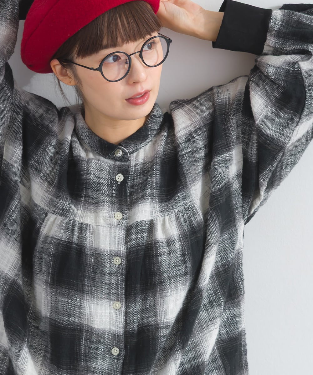 I53131 スラブチェック起毛フレアシャツチュニック / Slub Check Brushed Flare Shirt Tunic