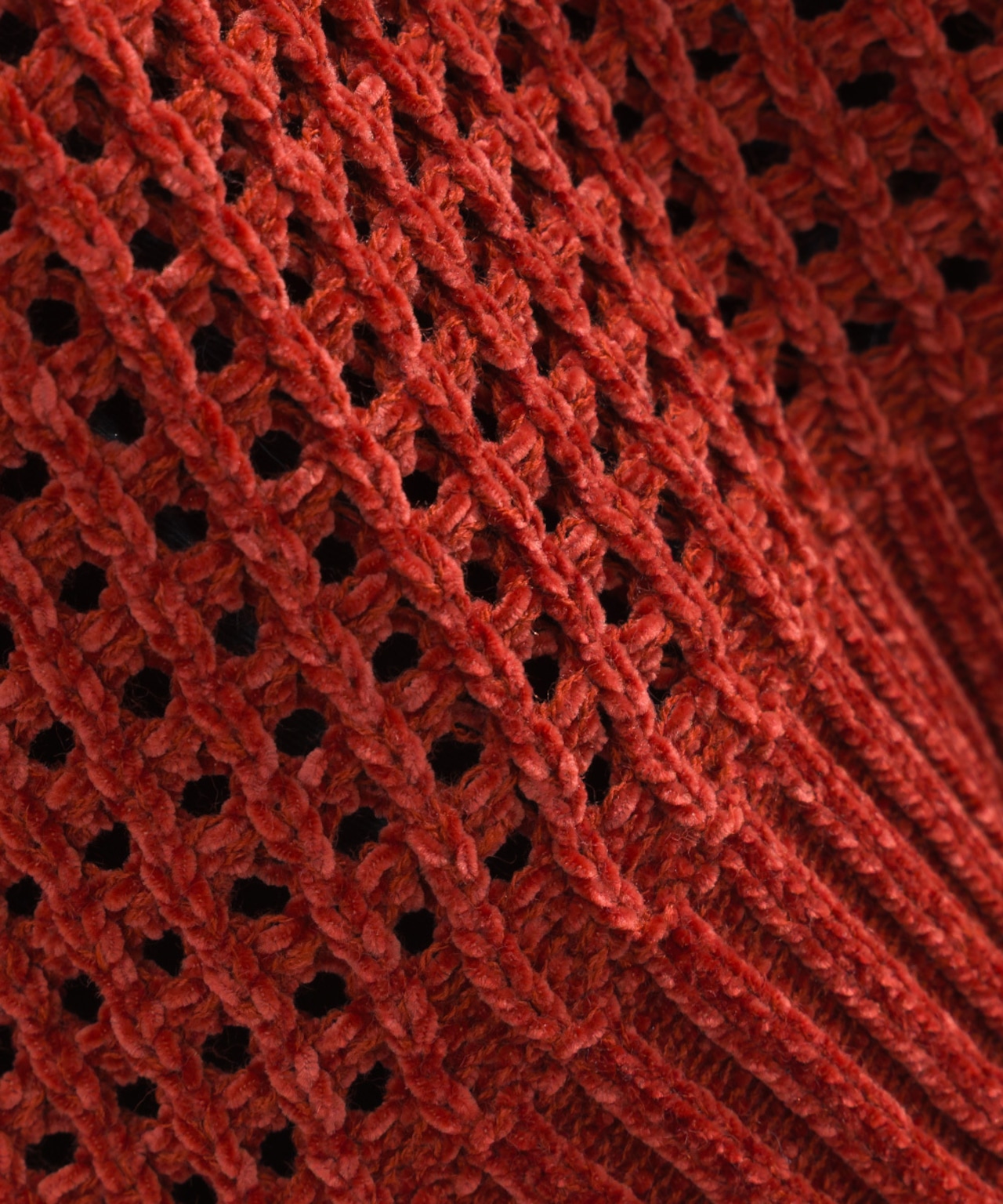 立体感のある柄編みが表情を生み出す、ふんわり柔らかなモール糸のプルオーバー。