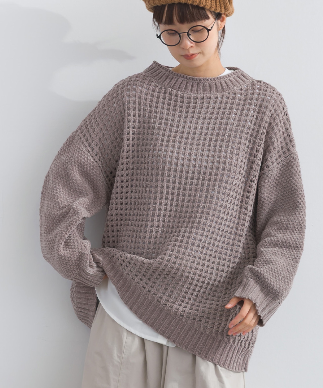 2025秋冬新作 2025AW オーバーサイズ ワンマイルウエア iriey アイリー ナチュラル カジュアル 体型カバー ニットプルオーバー セーター モールニット モールプルオーバー モールセーター モールヤーン ニット 人気