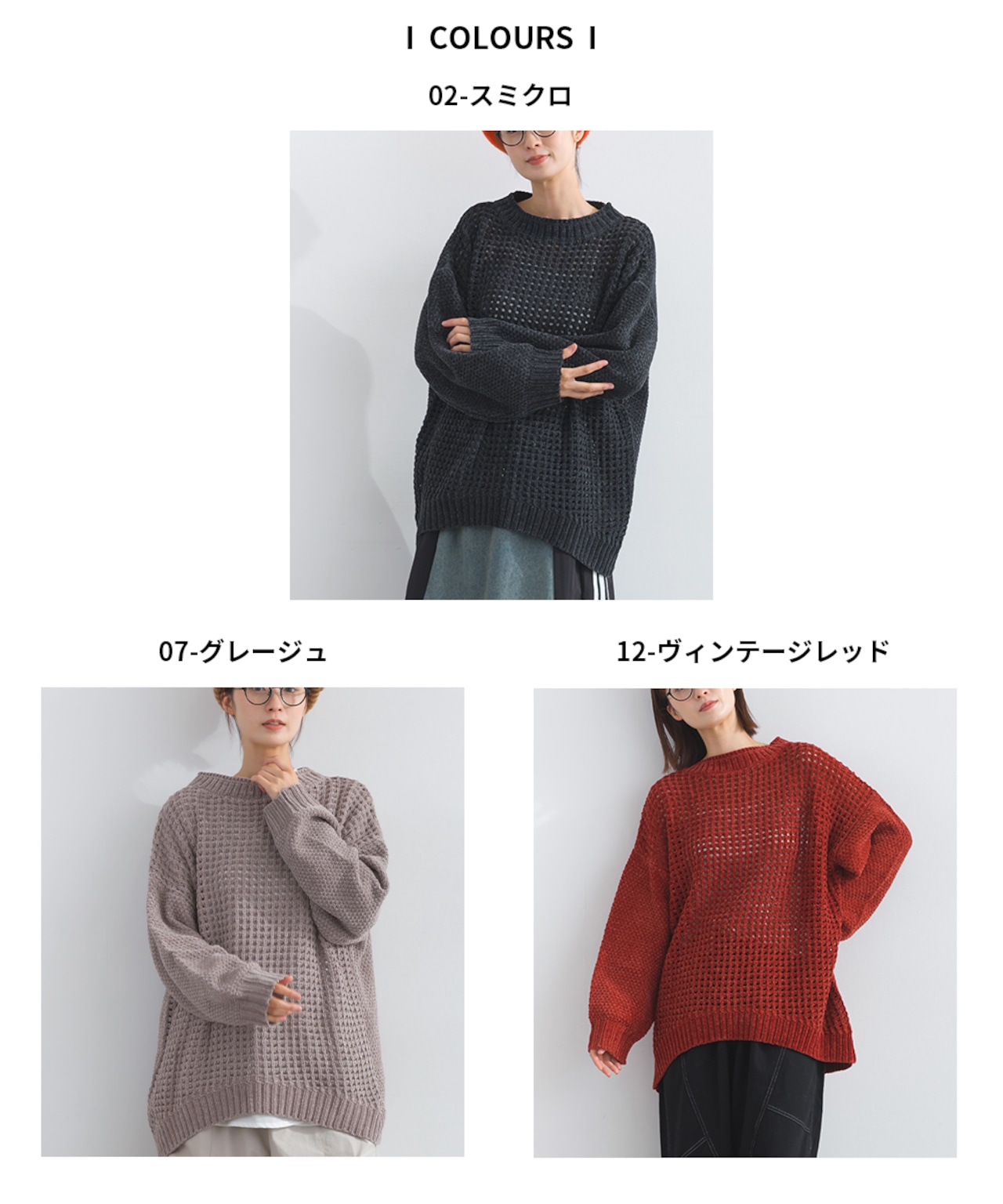 透け感 Sheerness: あり(編み組織による)/ Slight (due to knit structure)