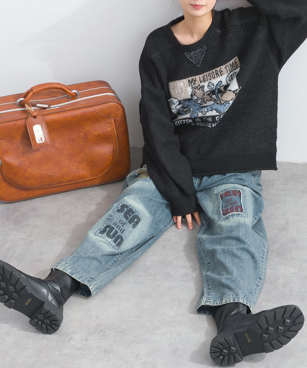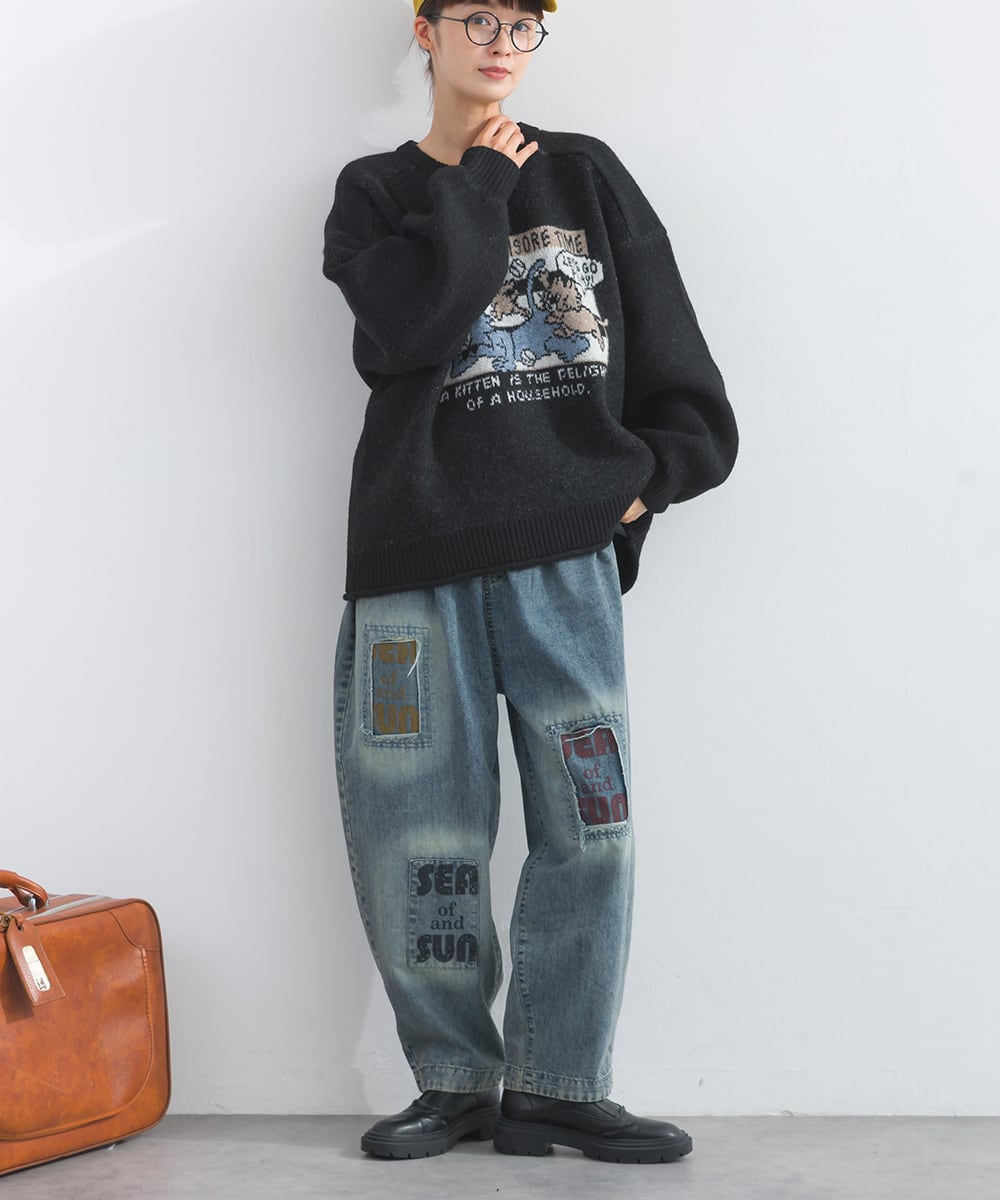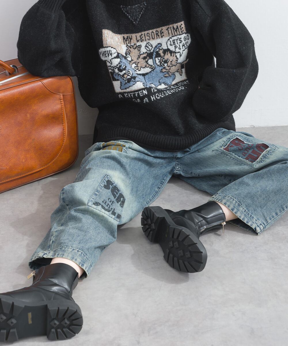 ラフなシルエットに遊び心あふれるパッチワークを施したデニムパンツ。
