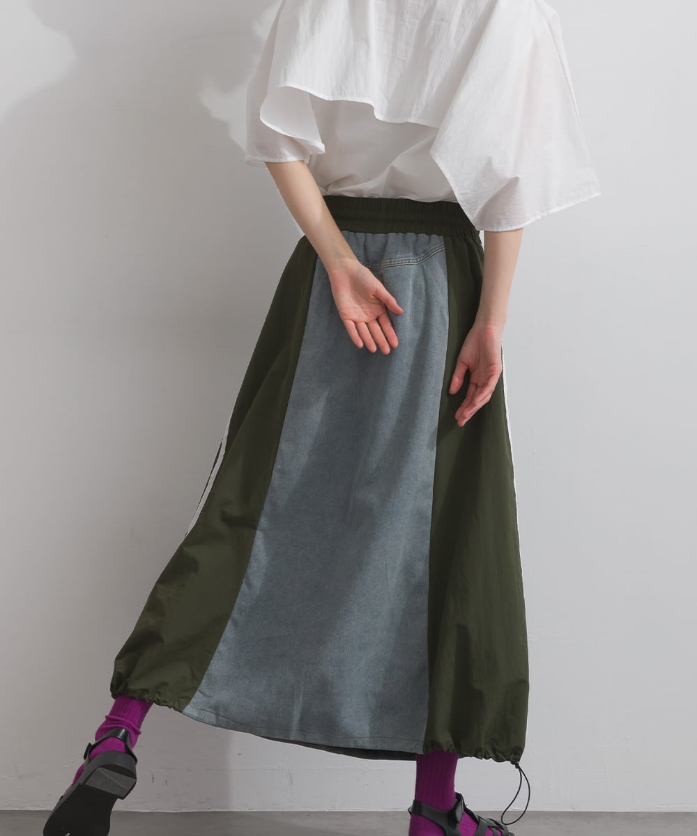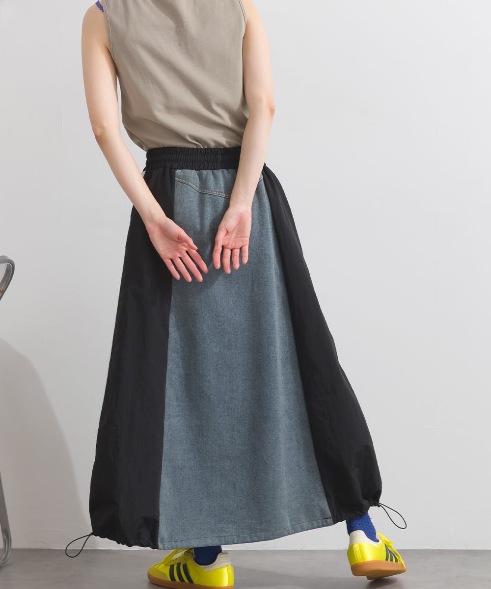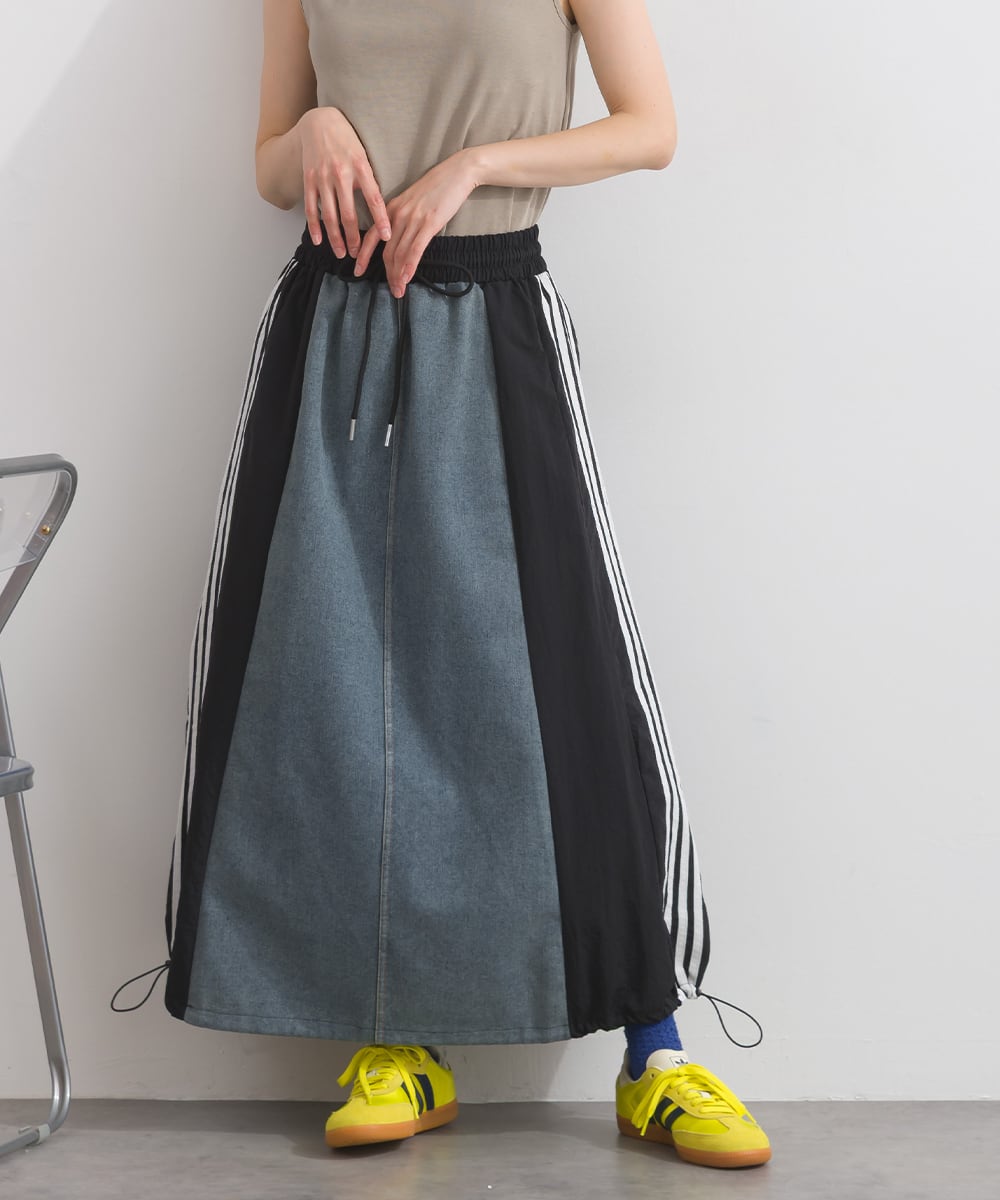 D54045 【体型カバーデニムシリーズ】 ラインテープ×デニム切替スカート / Line Tape × Denim Panel Skirt 【re-stock】