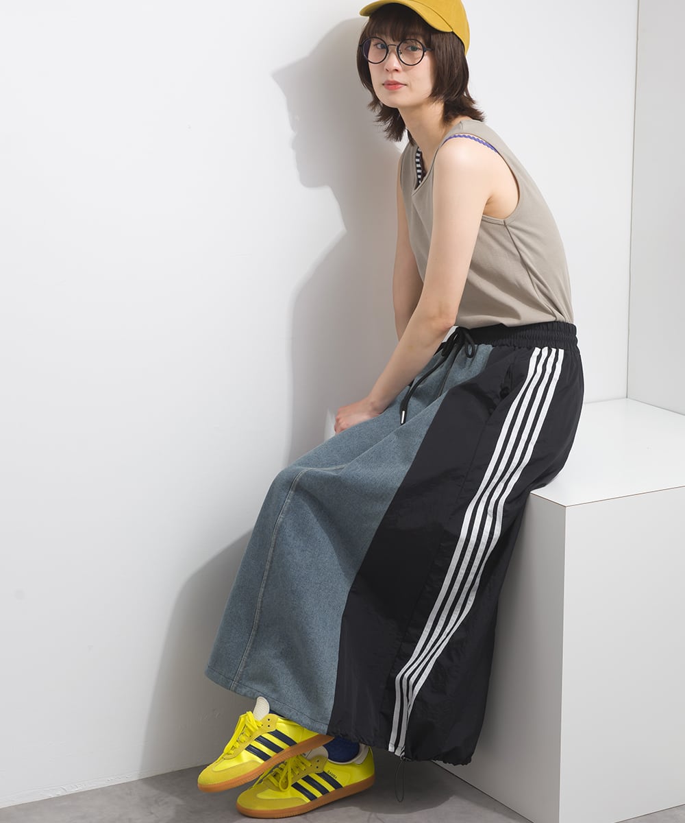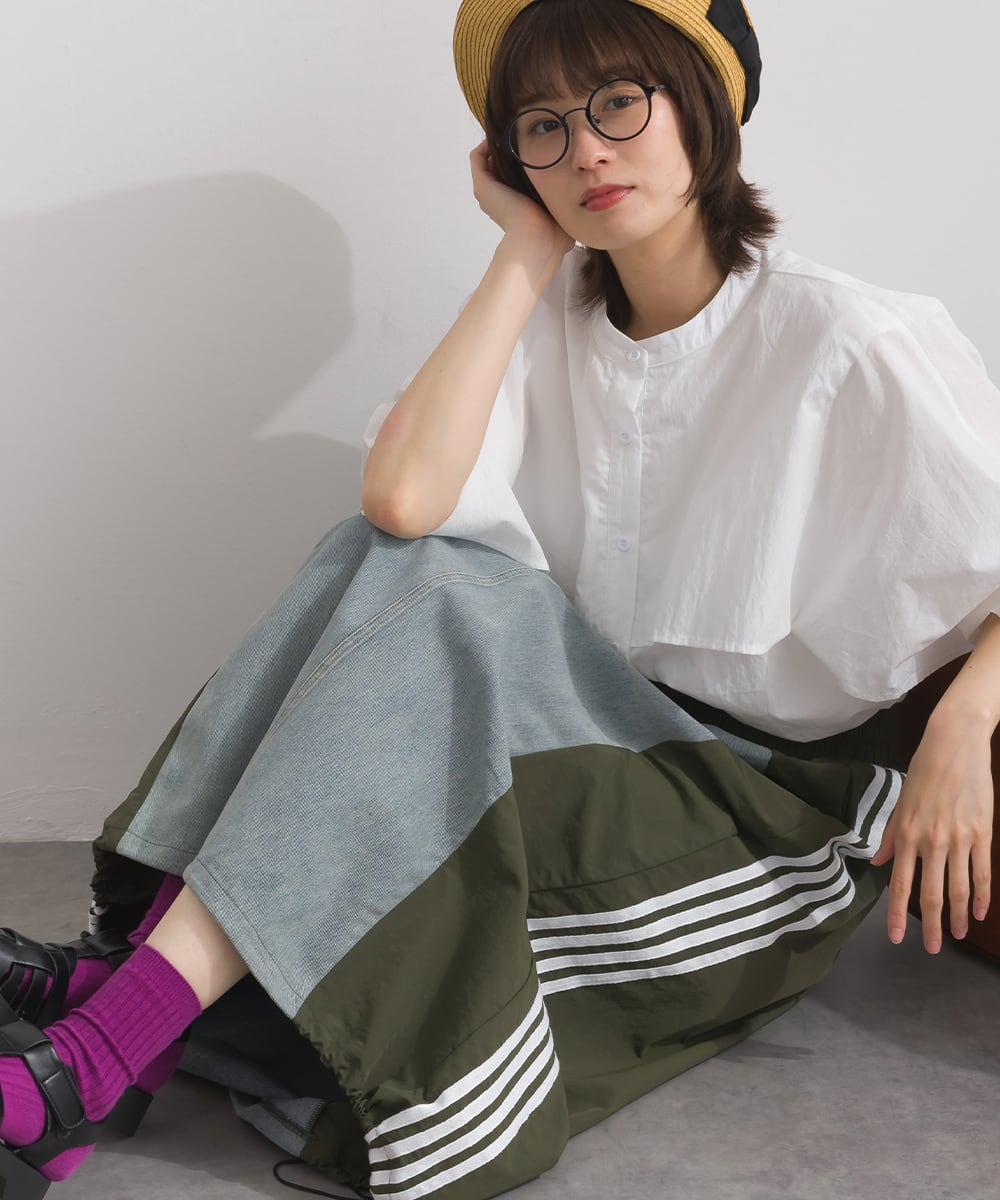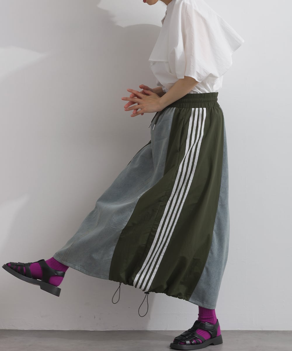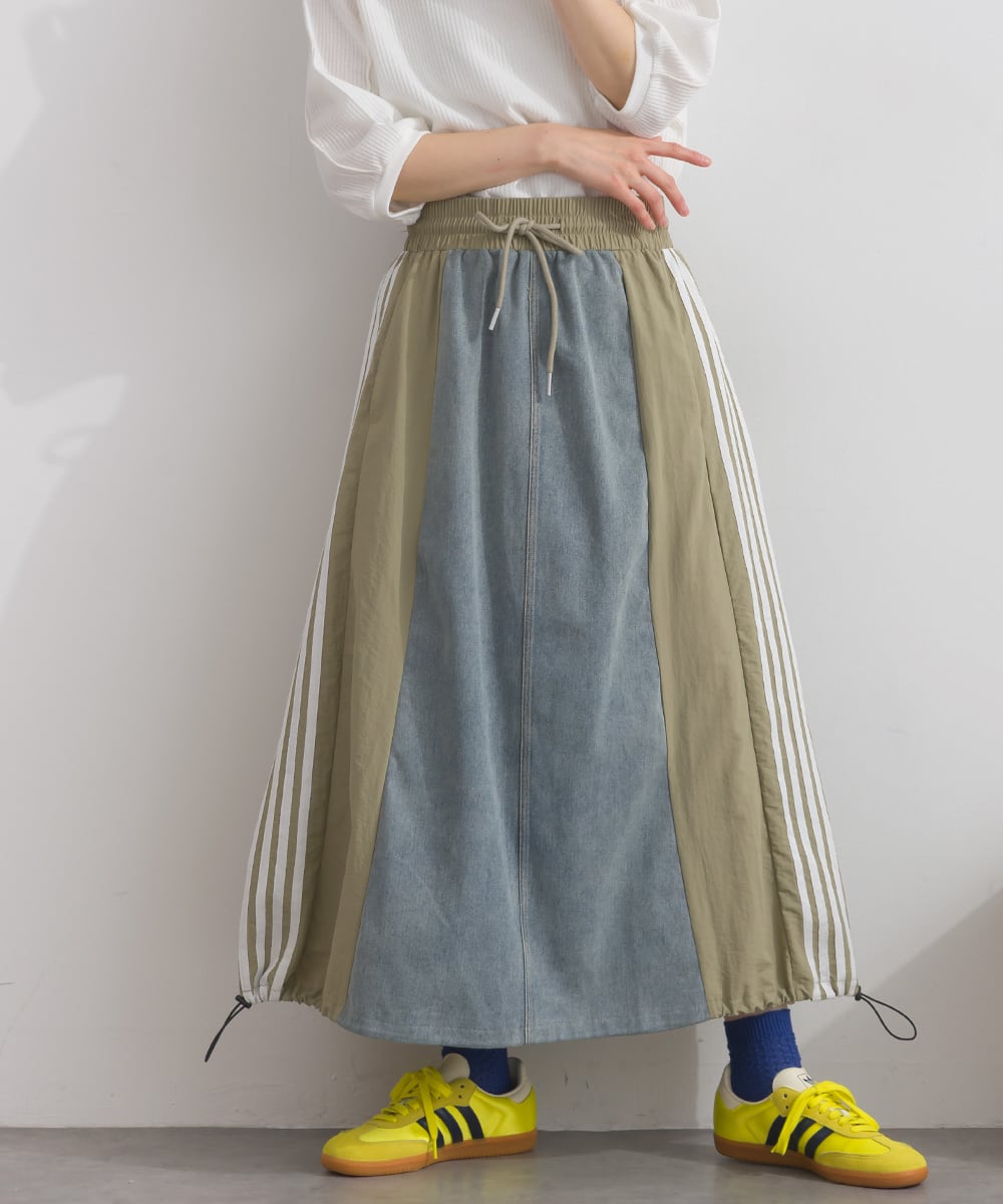 D54045 【体型カバーデニムシリーズ】 ラインテープ×デニム切替スカート / Line Tape × Denim Panel Skirt 【re-stock】