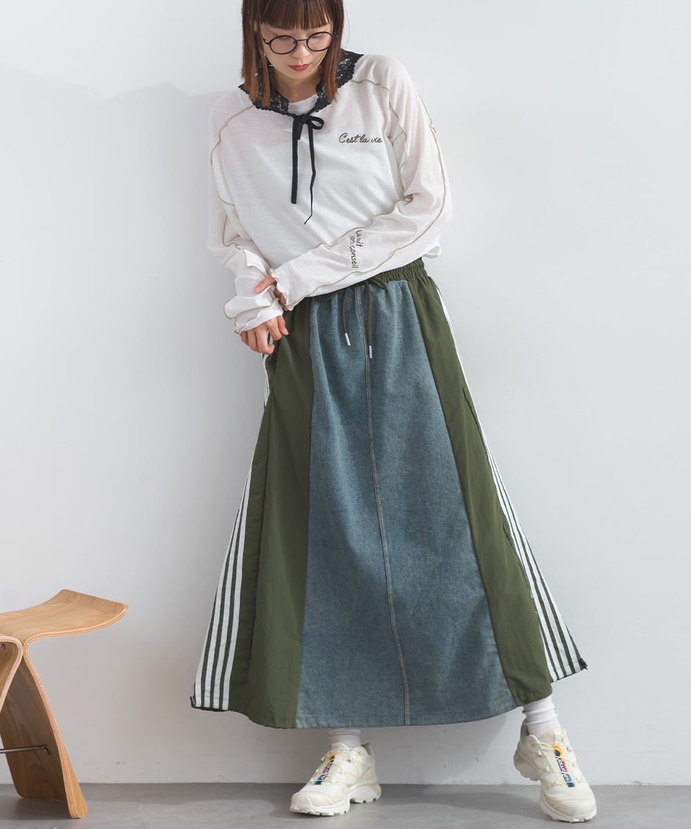ラインテープ×デニム切替スカート