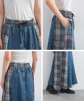 D54044 デニム×チェック切替スカート / Denim × Check Panel Skirt