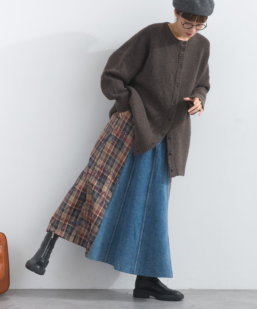 2025AW 2025秋冬新作 秋冬コーデ オーバーサイズ ワンマイルウエア iriey アイリー カジュアル ナチュラル ミセス ゆったり 体型カバー ゆったりシルエット デニムスカート チェックスカート 切替スカート 異素材スカート ロングスカート ミモレ丈スカート レディーススカート 秋冬スカート ウエストゴムスカート ポケット付きスカート カジュアルスカート 大人カジュアルスカート トレンドスカート 体型カバースカート デザインスカート デイリースカート スカートコーデ 華やかスカート チェック柄スカート デニムチェック リメイク風スカート