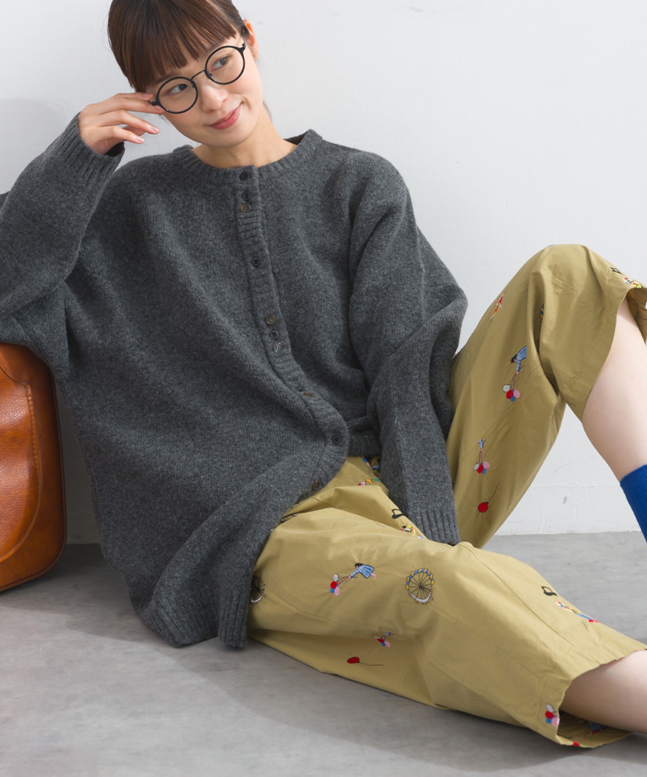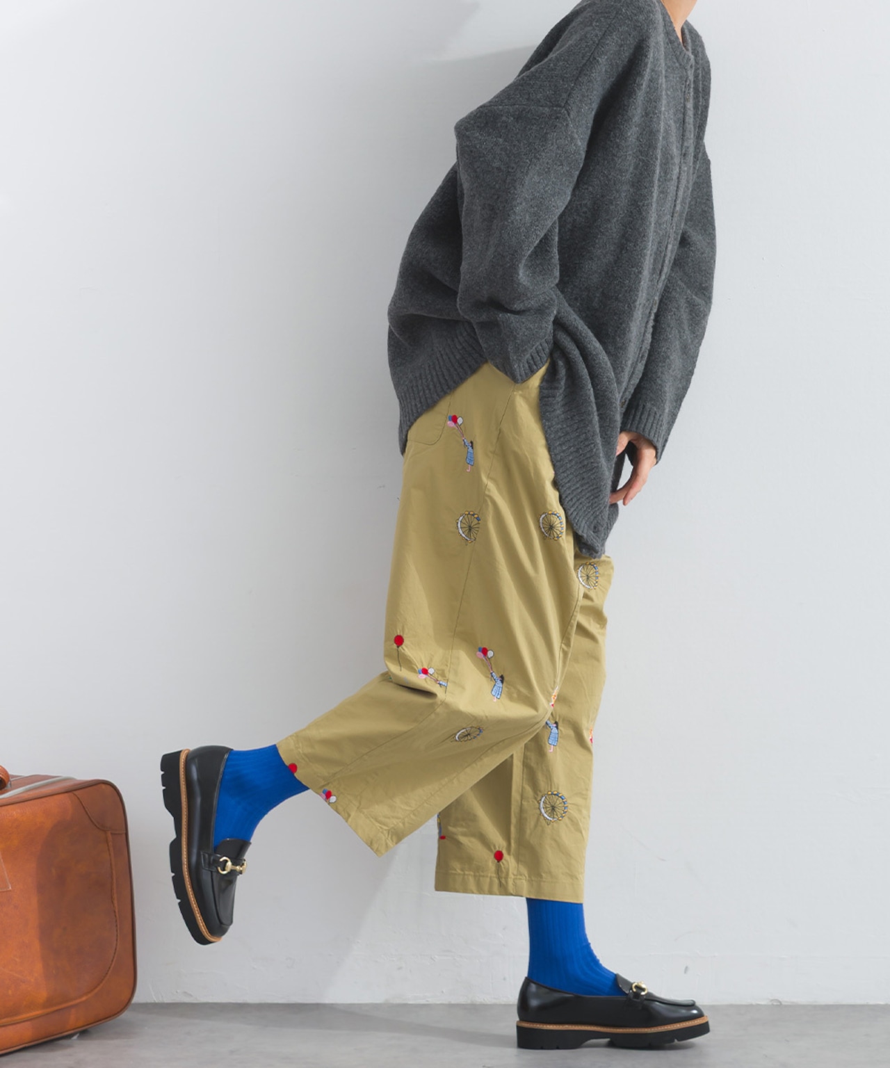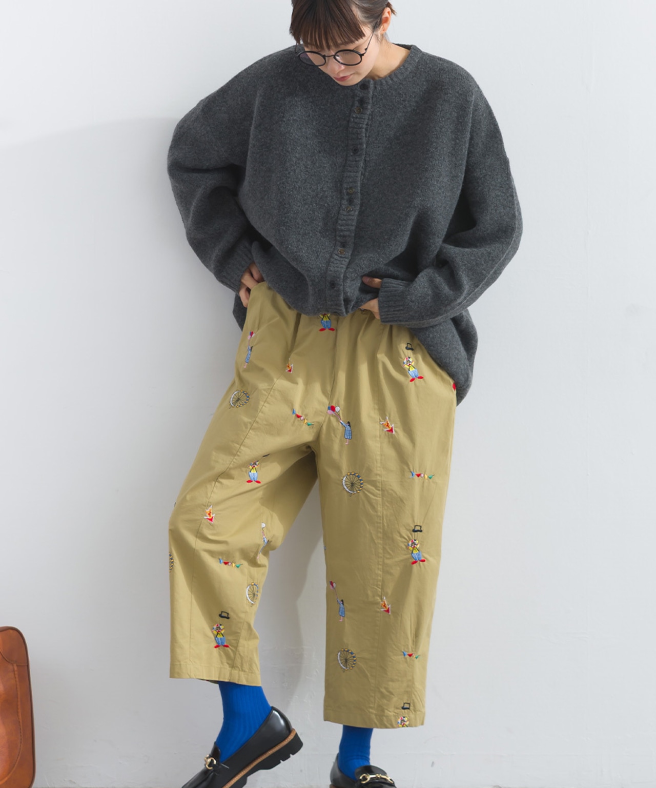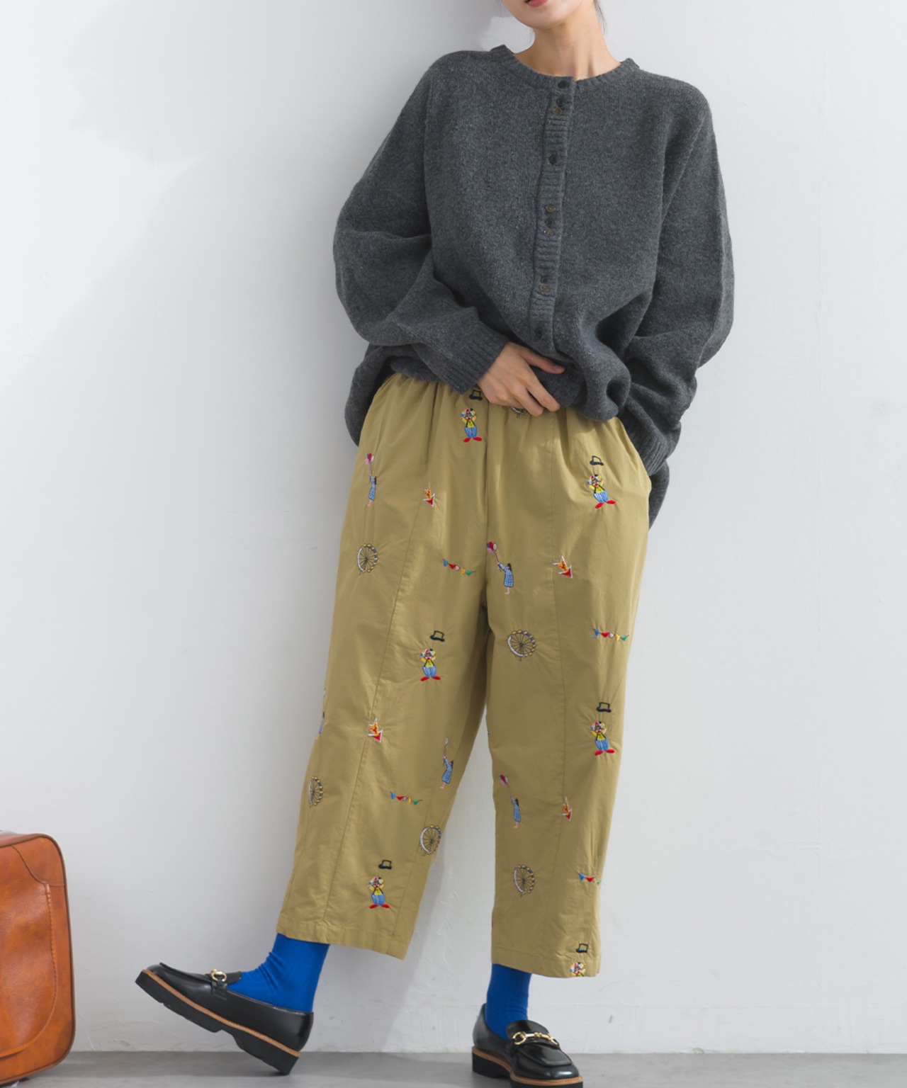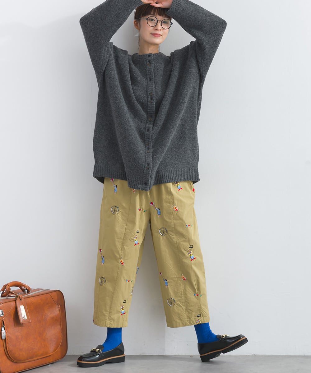 2025AW 2025秋冬新作 秋冬コーデ オーバーサイズ ワンマイルウエア iriey アイリー カジュアル ナチュラル ミセス ゆったり 体型カバー ゆったりシルエット 刺繍パンツ 総柄デザイン 柄パンツ ワイドパンツ ウエストゴム レディース メンズライク ユニセックス カジュアル 秋冬ボトムス 楽ちんパンツ デイリー使い 個性派ファッション おしゃれパンツ ストリート 大人カジュアル