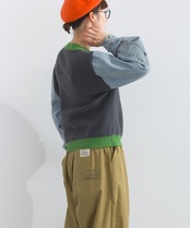 袖にデニム生地を大胆に切替え、立体感のあるポケットを施したデザインが印象的。