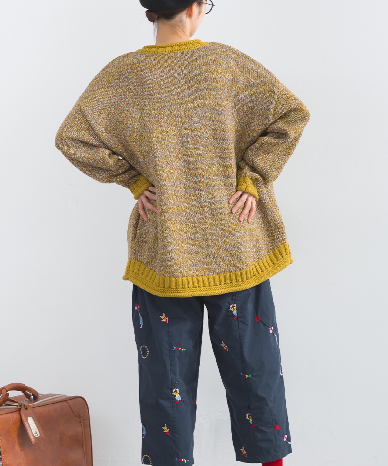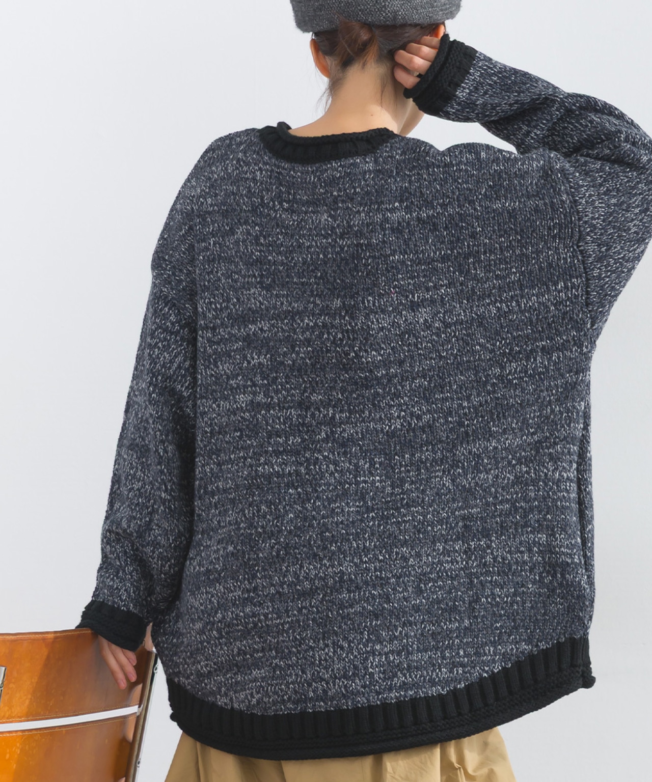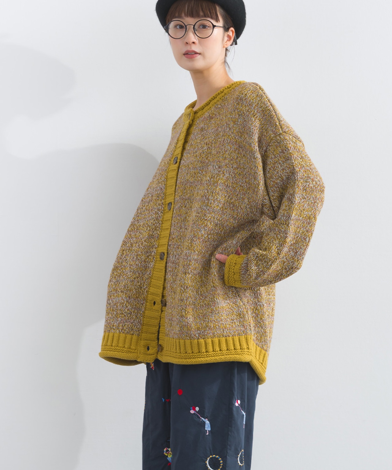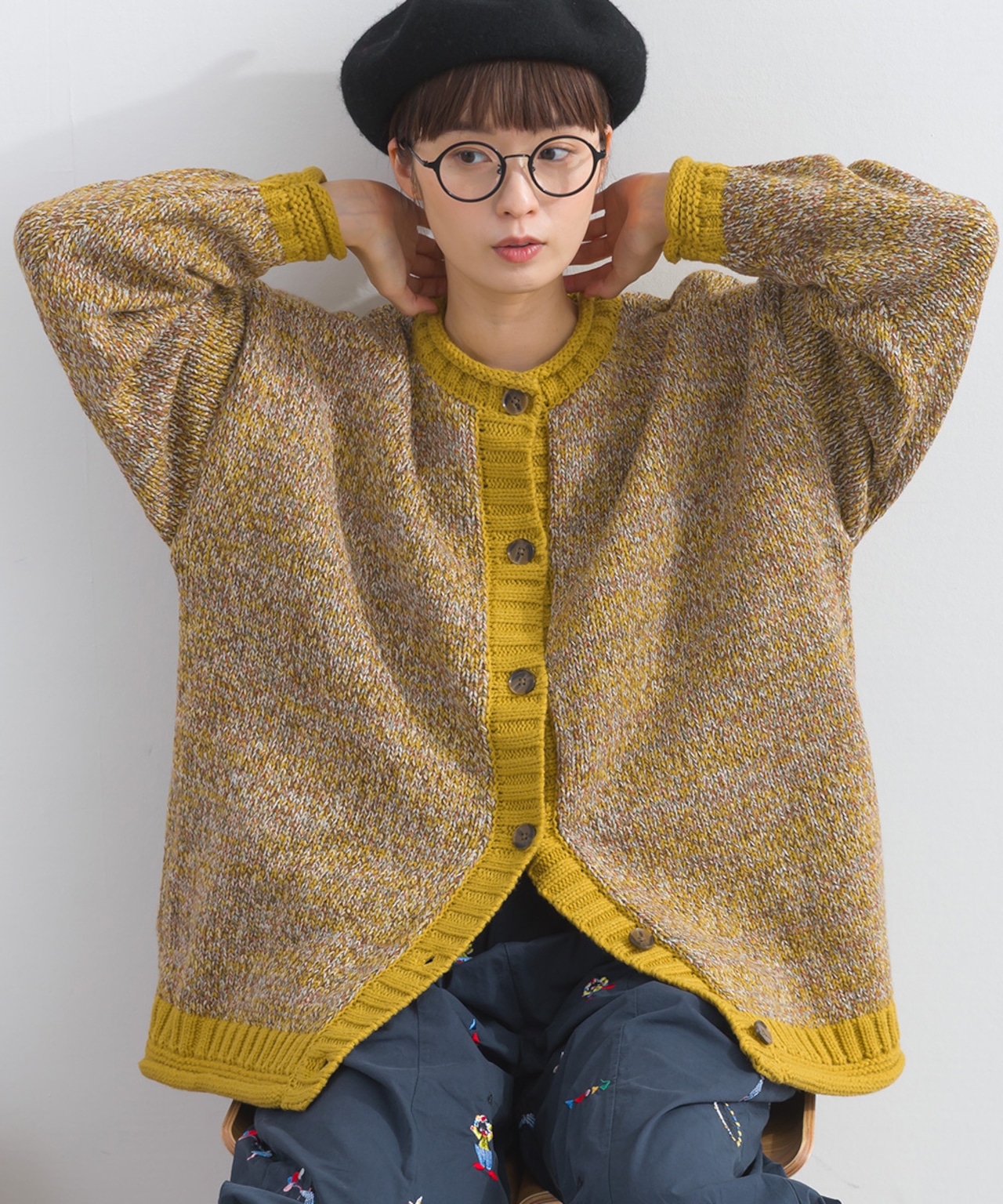 2025AW 2025秋冬新作 秋冬コーデ オーバーサイズ ワンマイルウエア iriey アイリー カジュアル ナチュラル ミセス ゆったり 体型カバー ゆったりシルエット カジュアルスタイル レイヤードコーデ ナチュラル服 着回しコーデ 大人カジュアル おうちコーデ 旅行コーデ おしゃれコーデ リラックスウェア デイリーコーデ 楽ちんコーデ ストリートミックス ミックスニット 配色カーデ ロール始末 前開きニット ドロップショルダー 配色ボタン ニットカーデ 軽アウター