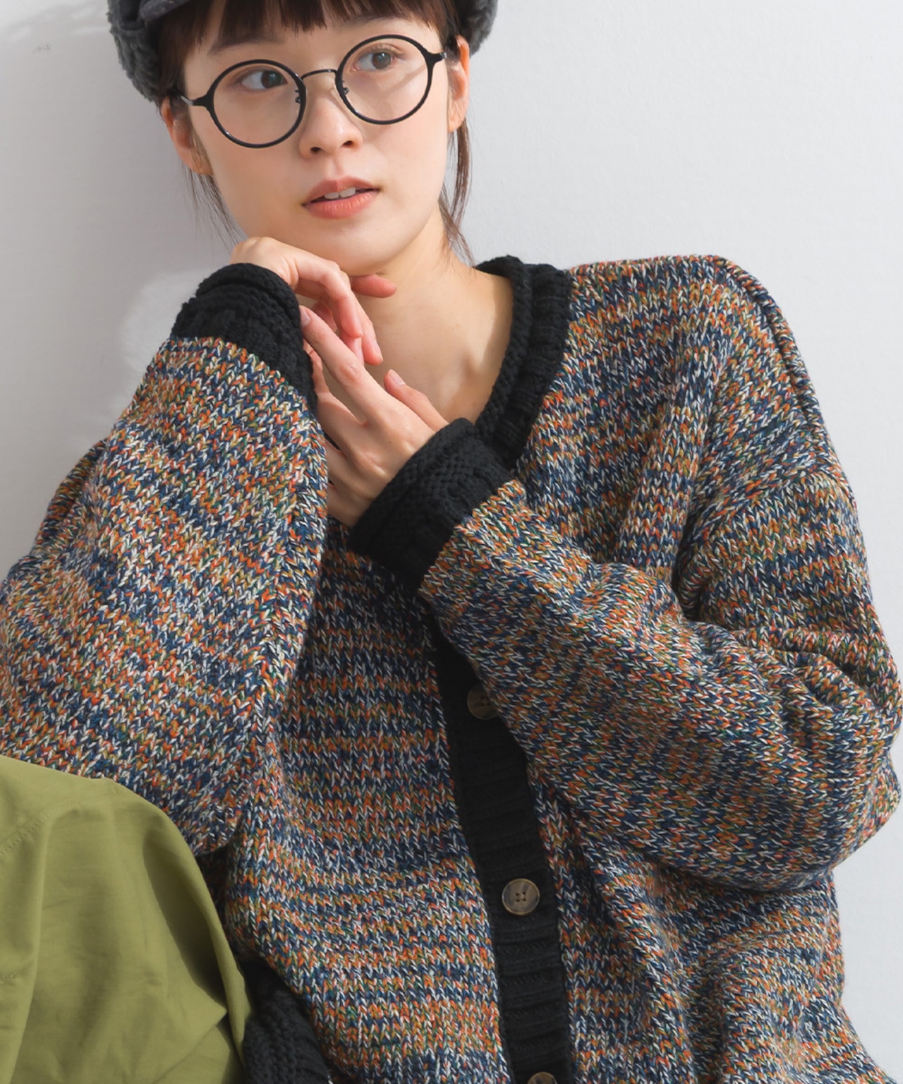 P53150 MIXカラーロールカーディガン / MIX Acrylic Roll Cardigan