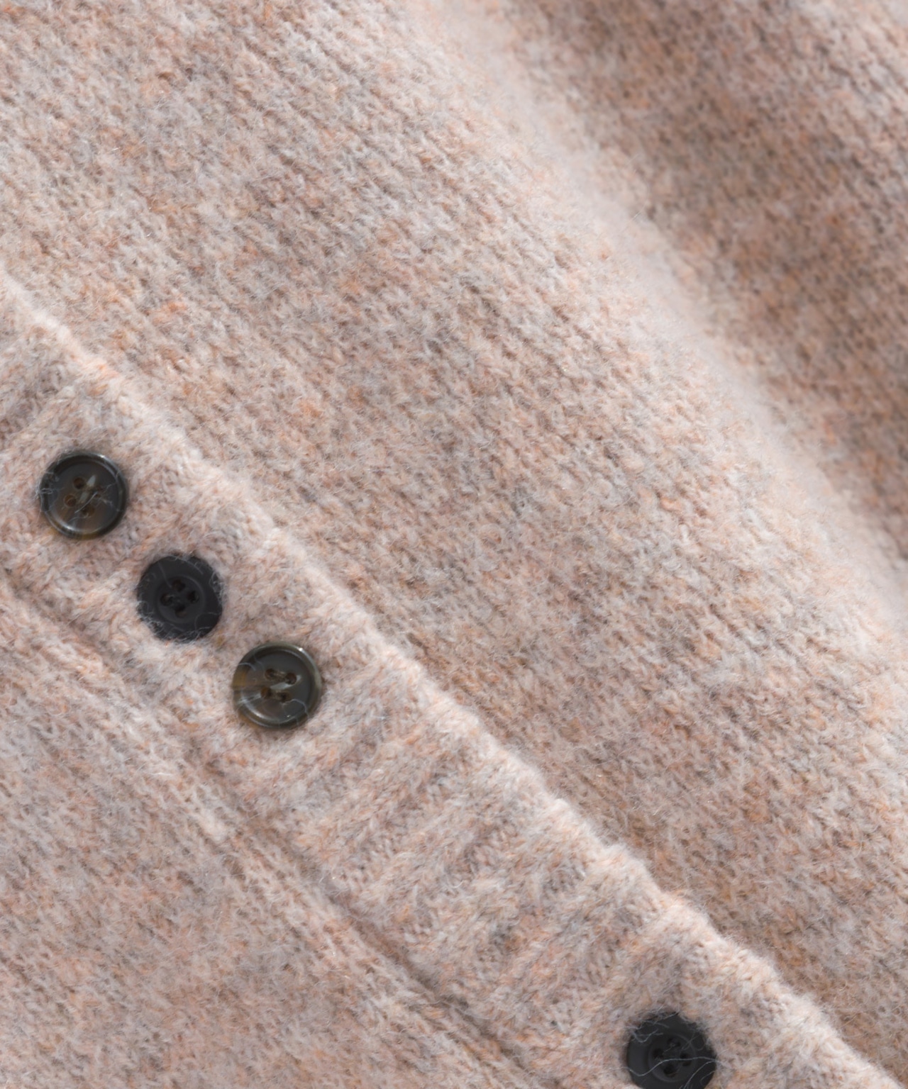 Designed with a playful touch, this knit cardigan features randomly placed buttons on the placket, creating a subtle yet stylish individuality.