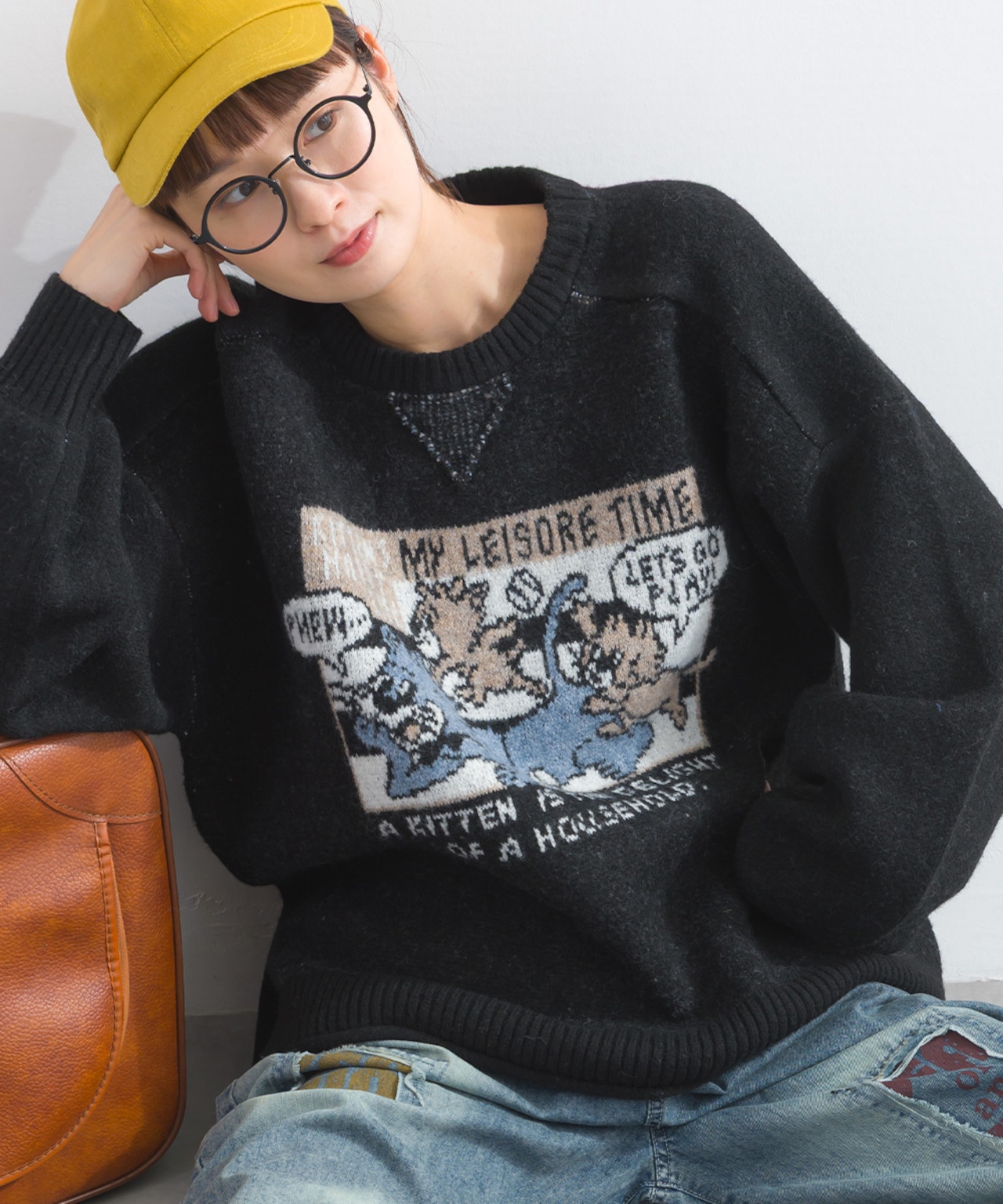 P53124 フラッフィーニットアメコミプルオーバー / Fluffy Knit American Comic Pullover